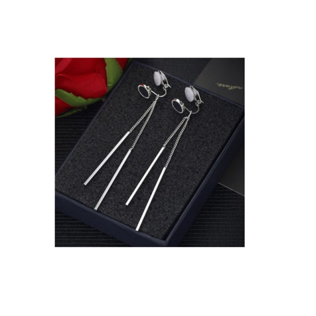 Pendientes de moda: ¡Novedad! Pendientes redondos con clip para mujer, elegantes pendientes con borlas falsas, sin perforaciones, joyería con dijes, regalo con clip para la oreja.