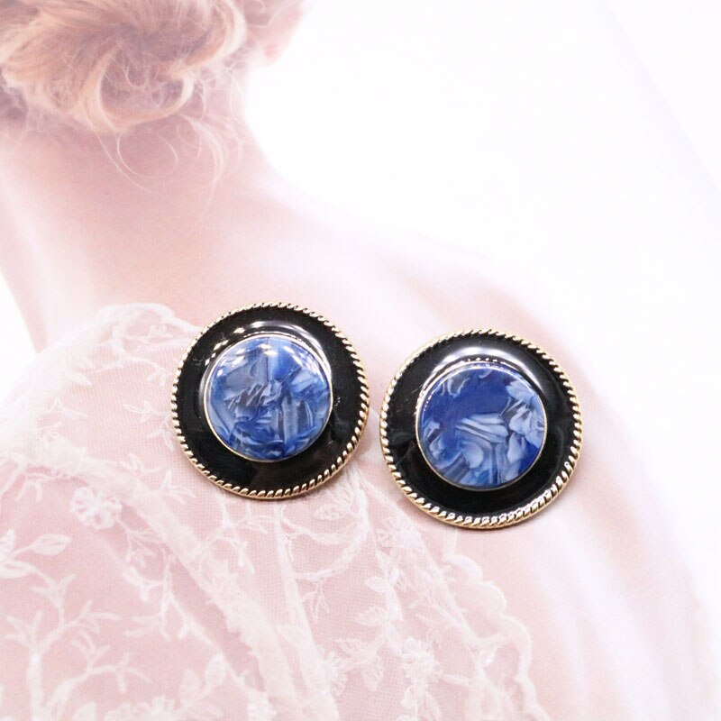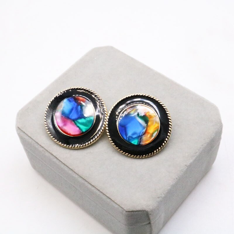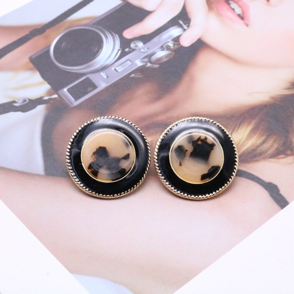 Pendientes de moda con perlas redondas de esmalte negro, bonitos pendientes de clip a la moda, joyería llamativa para mujer.