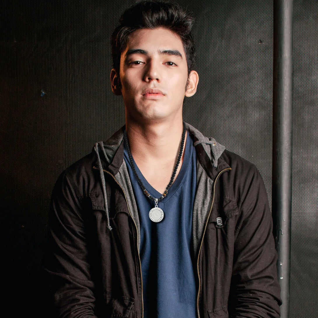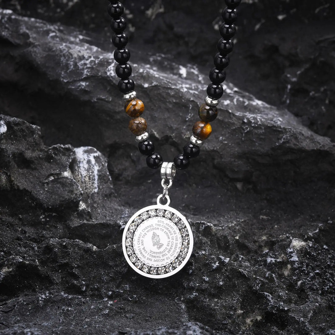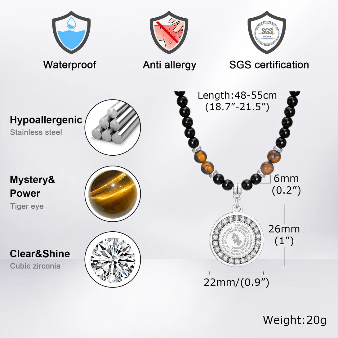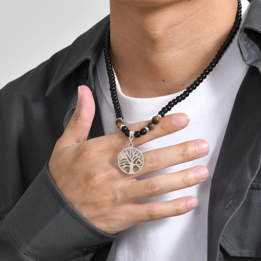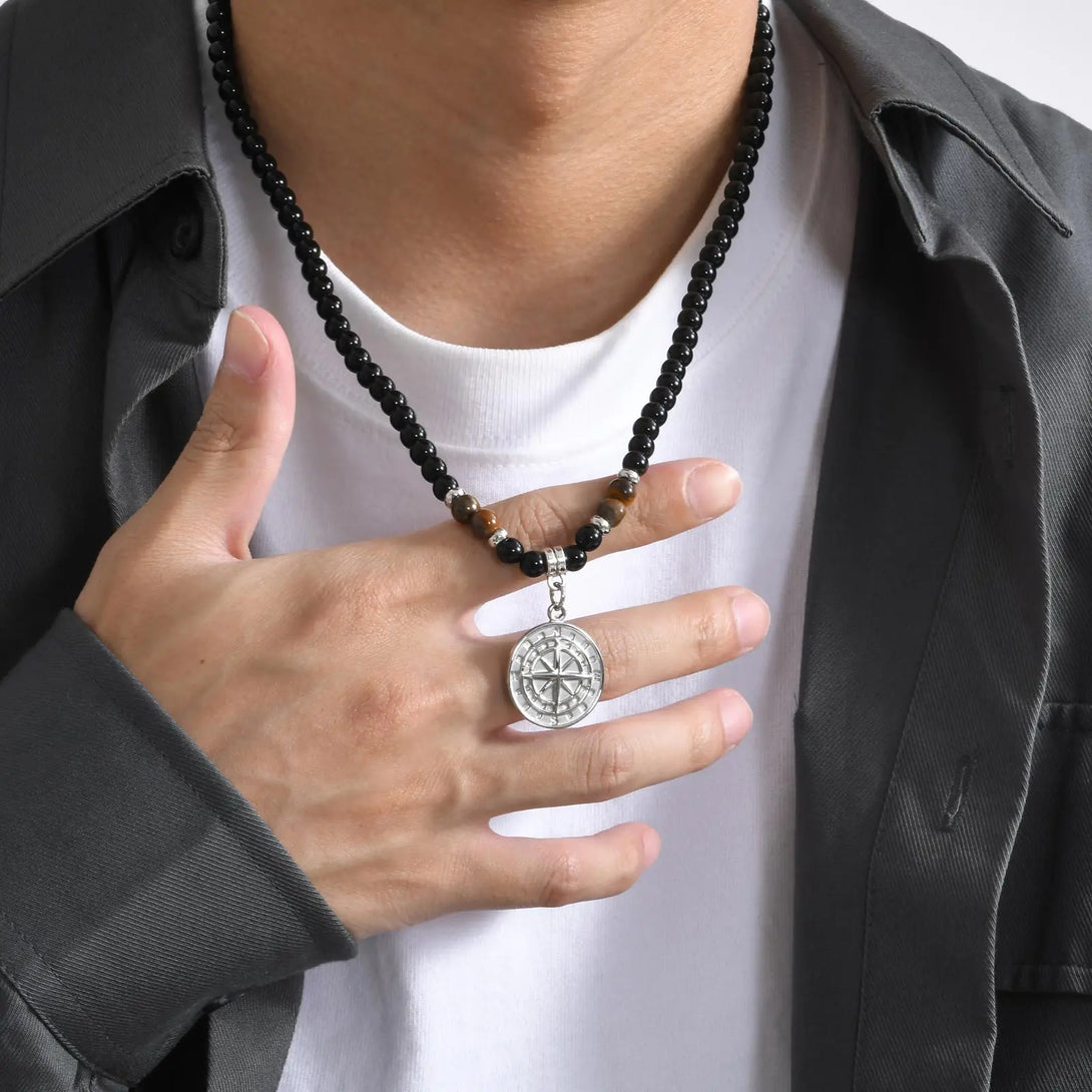 Collares de cuentas con colgantes redondos para hombres y niños, colgante de acero inoxidable con brújula y árbol de la vida, joyería punk de regalo.
