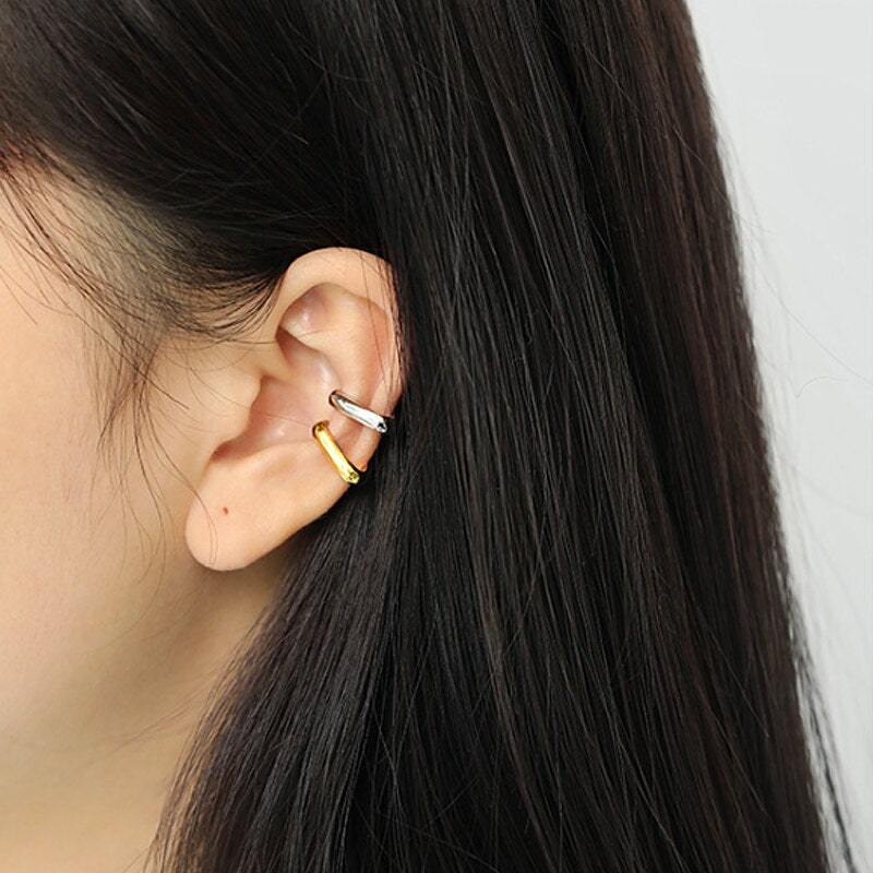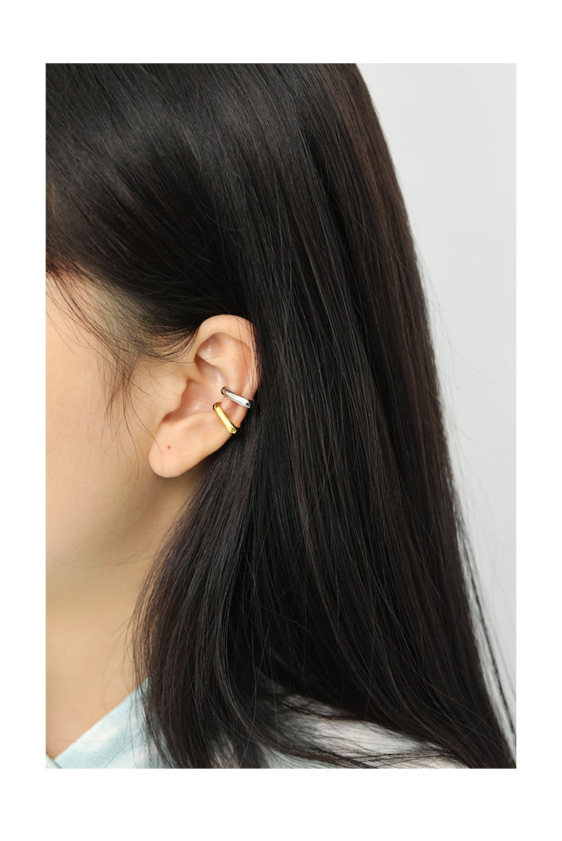 Pendientes de moda - 1 pieza de plata esterlina S925 coreana con hebilla de oreja minimalista, sin perforación, apilables, joyería fina