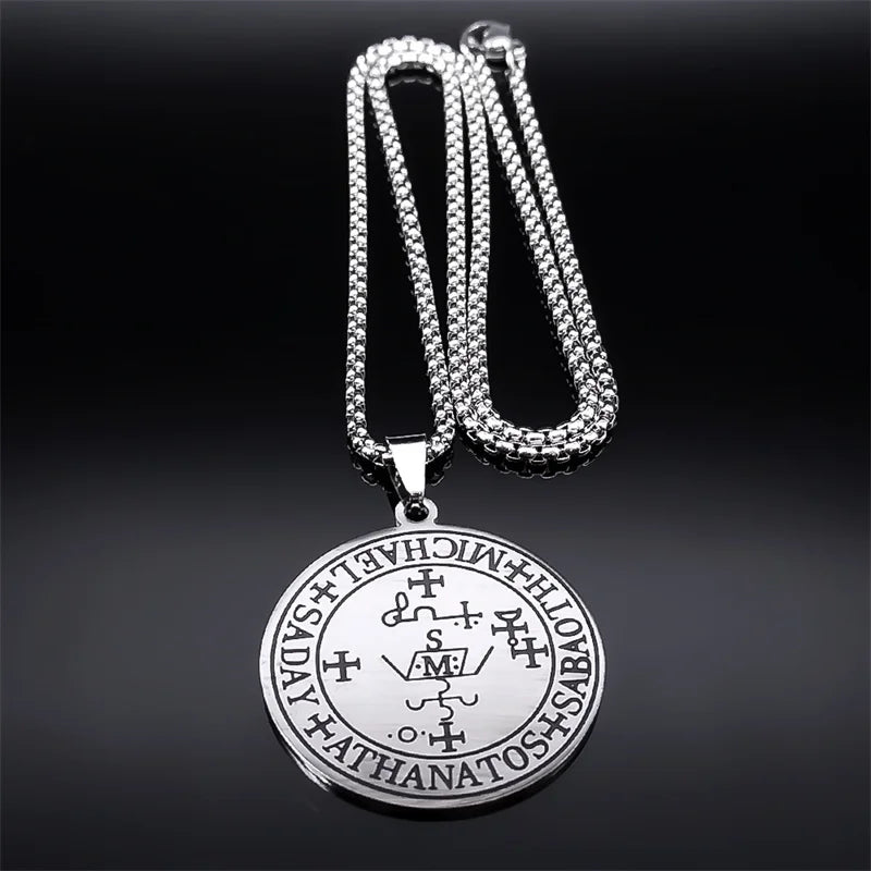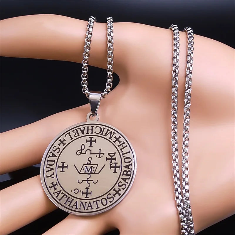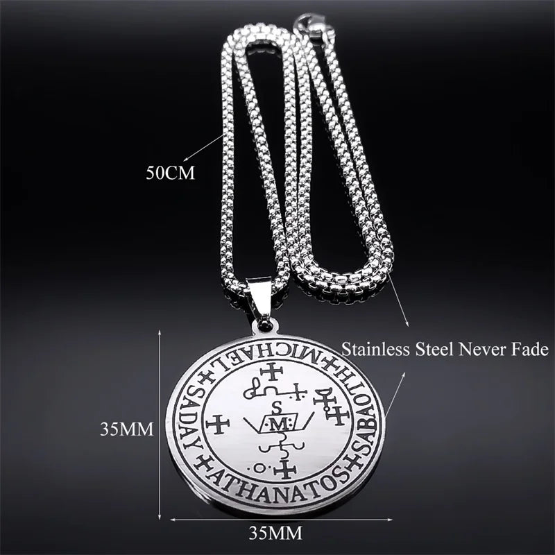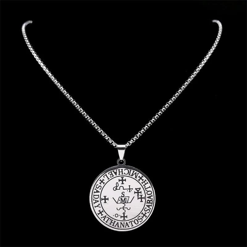 Collar con Medalla del Sello del Arcángel Miguel para Mujer/Hombre de Acero Inoxidable, Colgante de Talismán Athanatos Sabaoth, Joyería