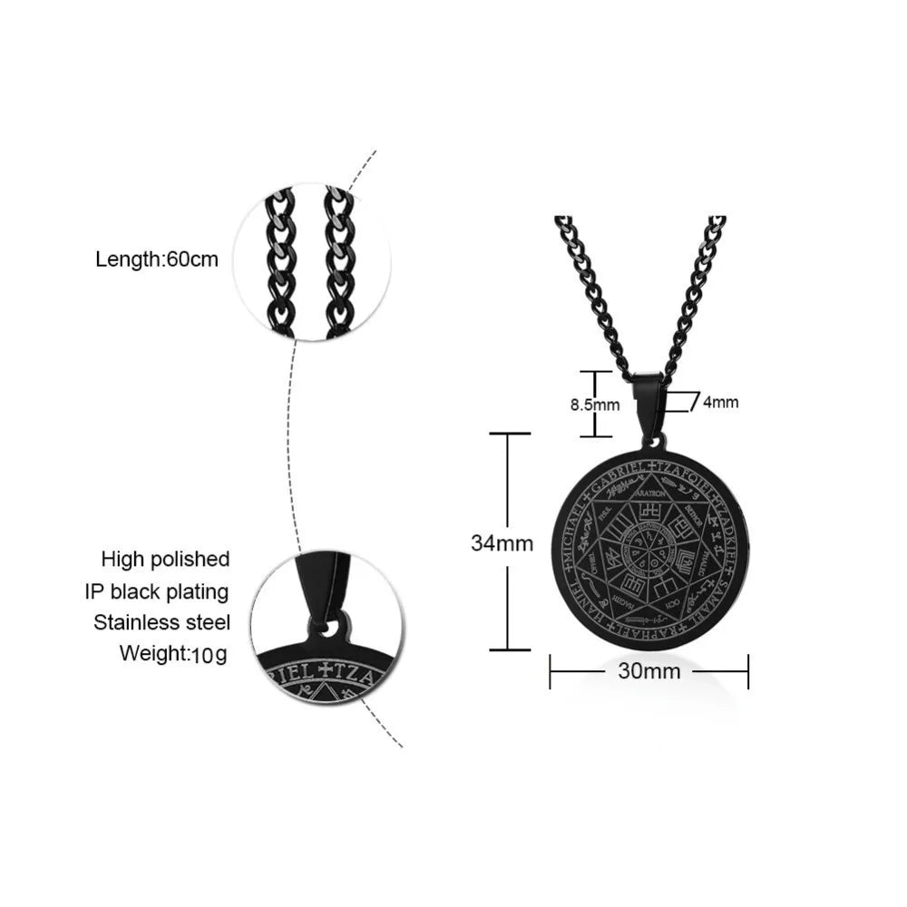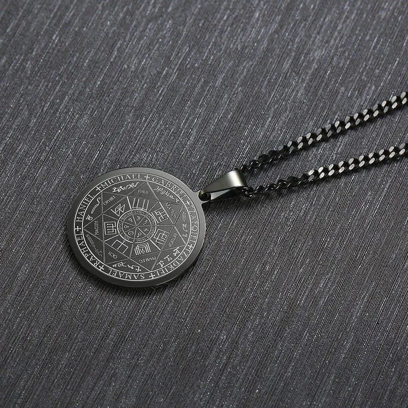 Talismán con sello de los Siete Arcángeles, joyería de ángel, colgante mágico, collar ocultista, Gabriel, Zadkiel, Samael, Rafael, acero inoxidable