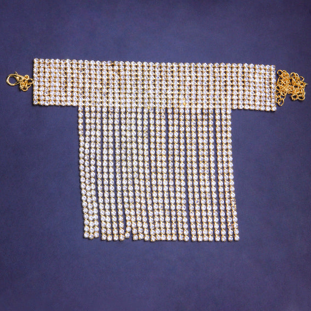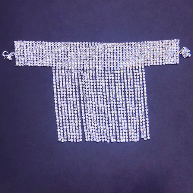 Tobillera larga con borlas y brillantes diamantes de imitación de varias filas