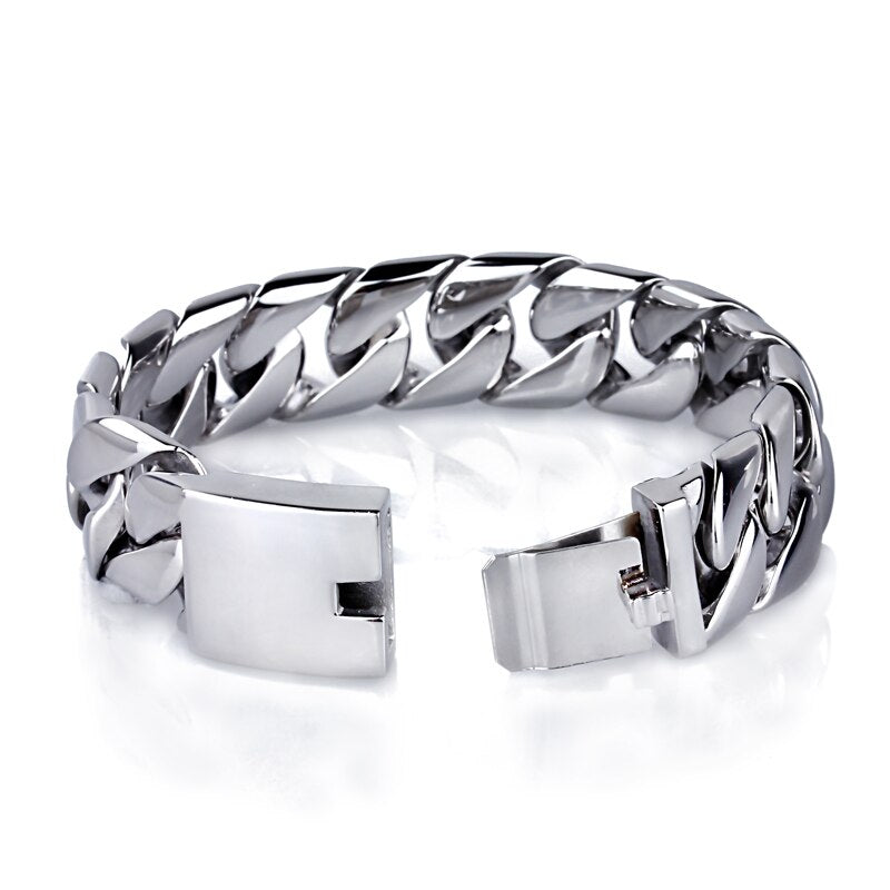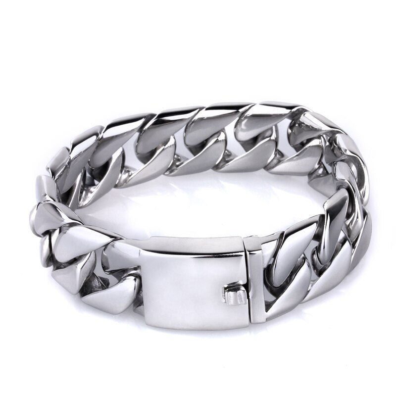 Pulseras de acero inoxidable 316L pulido brillante para hombre, cadena de eslabones cubanos de 20 mm de ancho, accesorio de joyería para hombre.
