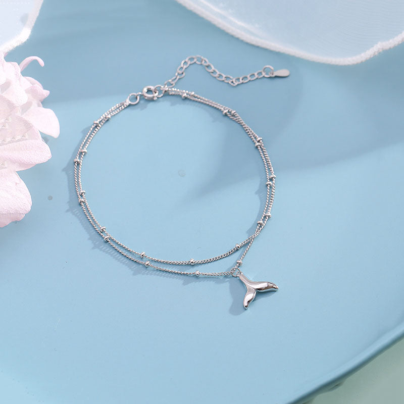 Tobilleras de cola de sirena de doble capa de cobre y color plateado, pulsera para el tobillo con cola de pez para mujer, joyería de verano