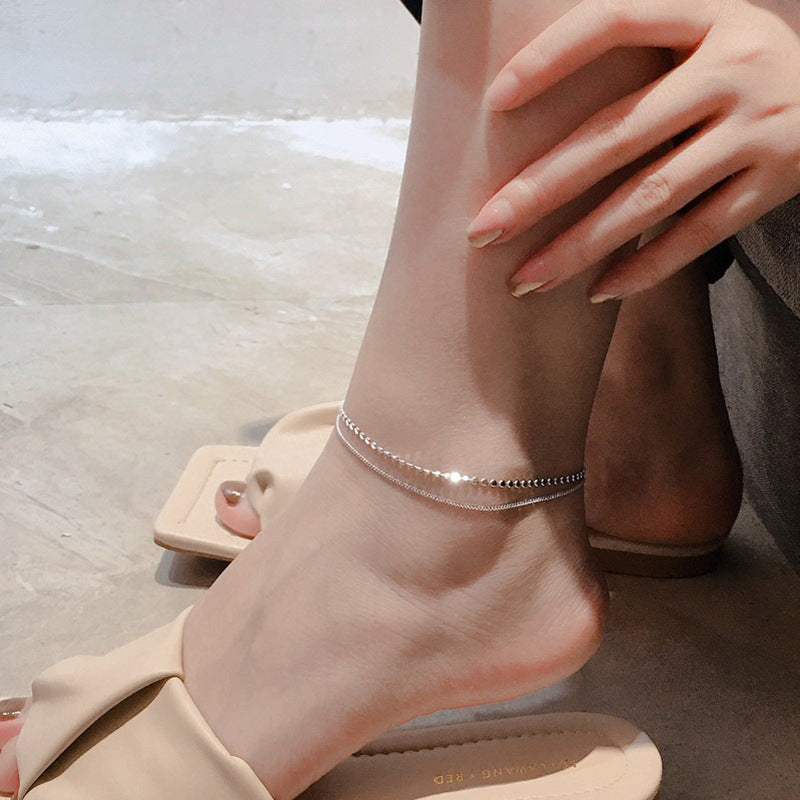 Tobilleras - Tobillera de doble capa color plata para mujer, tobillera con disco geométrico, pulsera, joyería de verano 2022, novedad