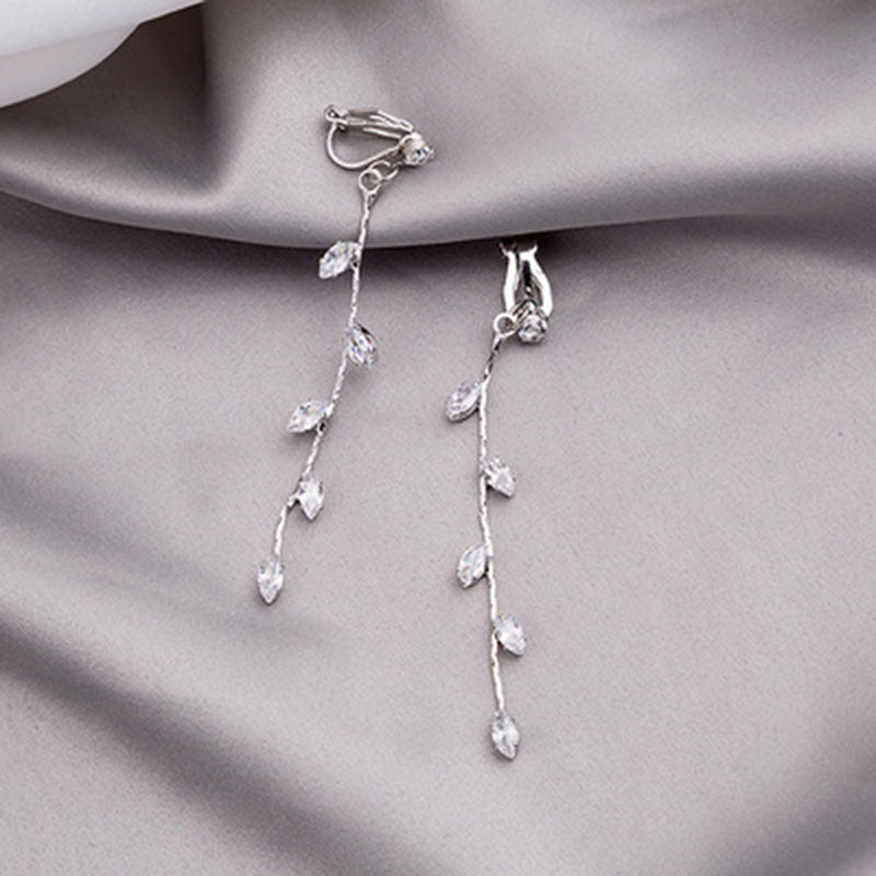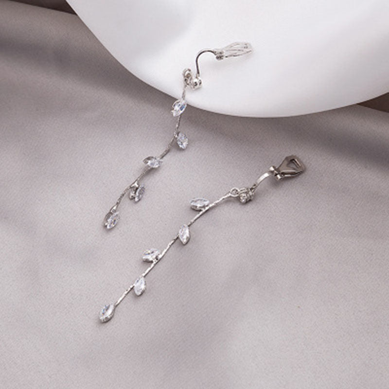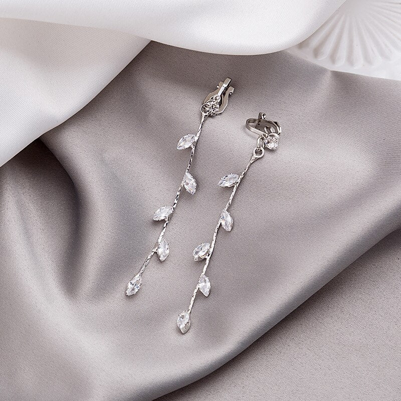 Pendientes de moda: nuevos y modernos pendientes de clip con forma de hoja de sauce y aguja de color plateado, joyería de moda, pendientes largos y sencillos con borlas para mujer, regalo.