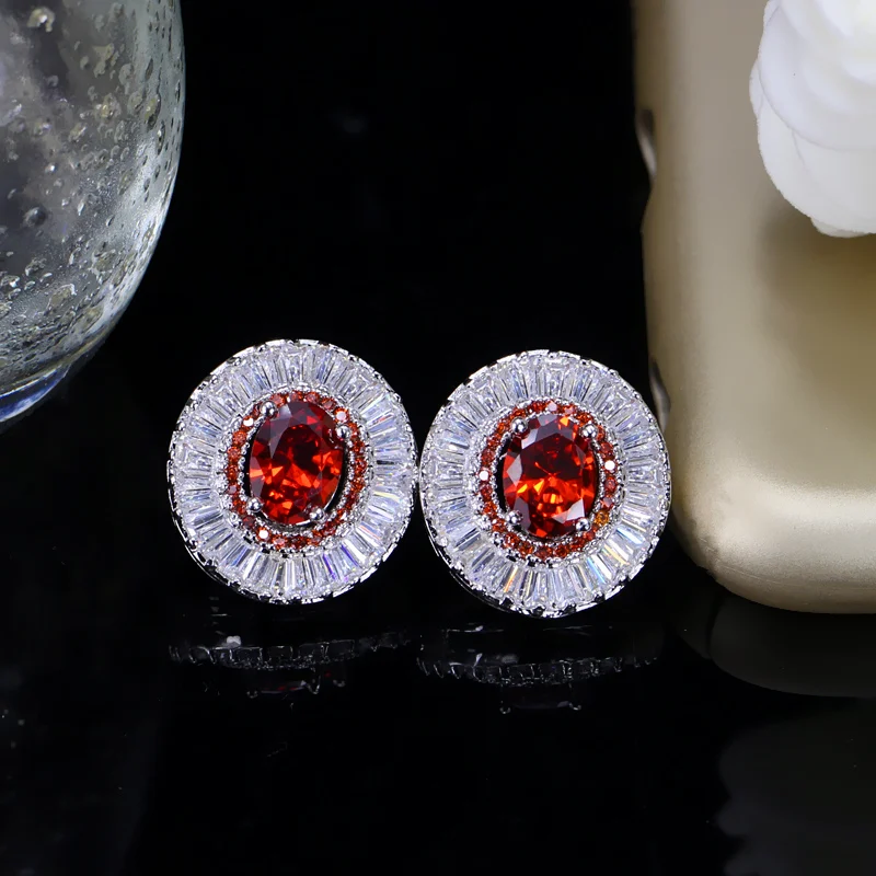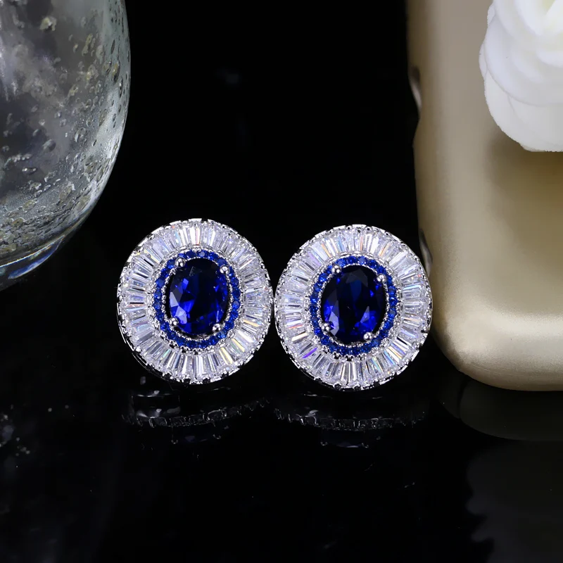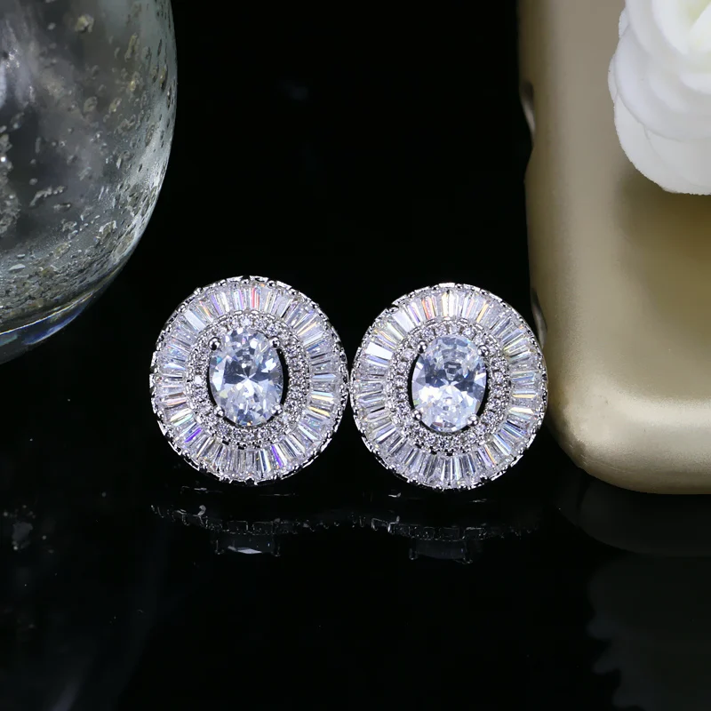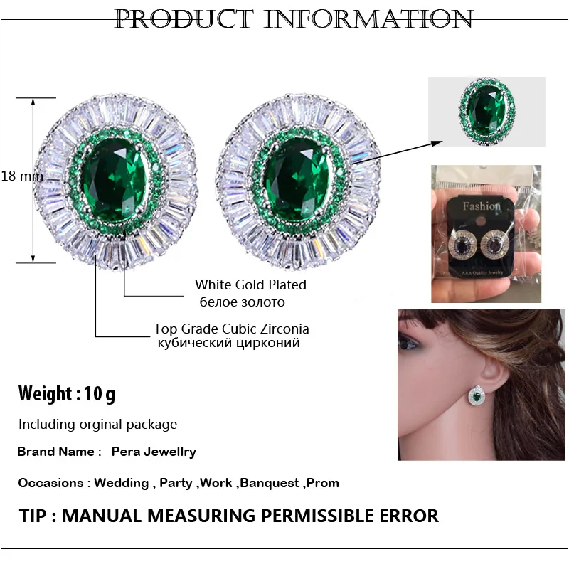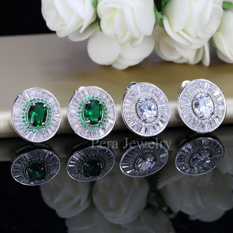 Pendientes grandes de circonita cúbica con diseño redondo, color plata, de marca famosa, para mujer, para fiesta, con piedra de cristal verde y blanca, para regalo.