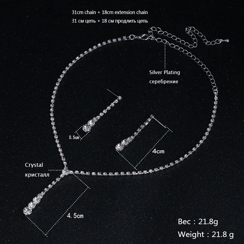 Conjuntos de joyas: conjunto de collar y pendientes de cristal estilo celebridad bañados en plata para novias y damas de honor.