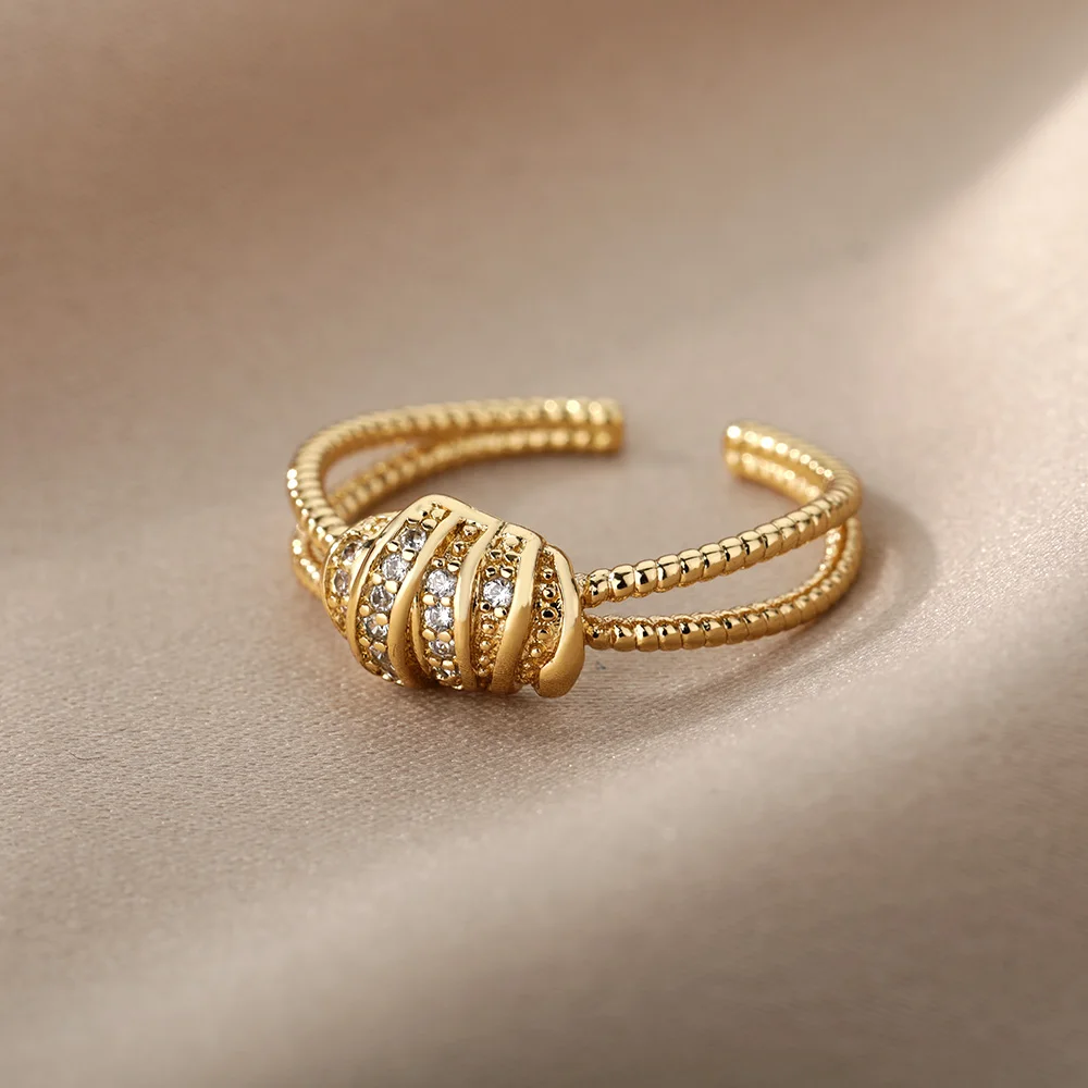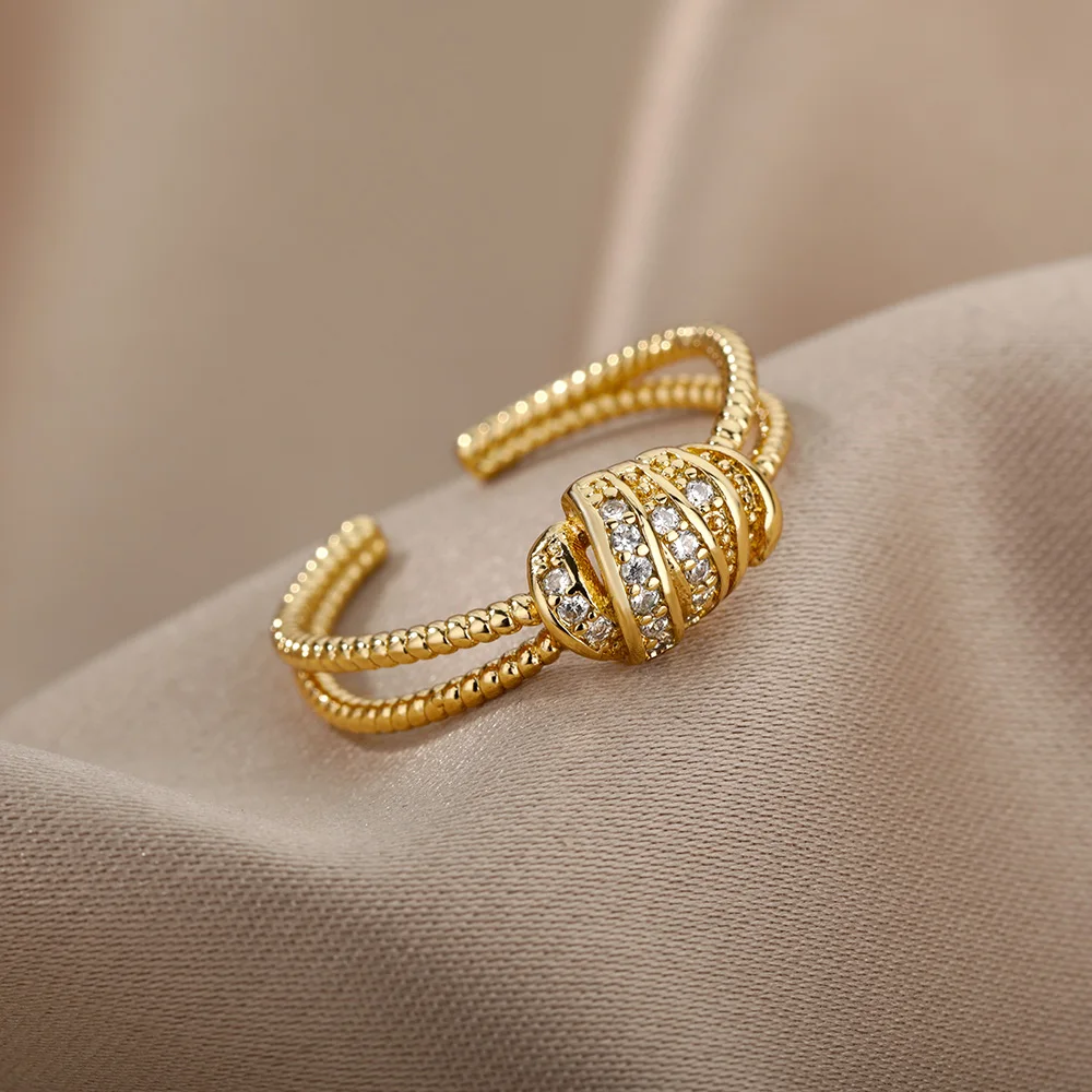 Joyería de oro 585 - Anillos de pareja con cruz sencilla de acero inoxidable y cadena de barba con circonitas, anillo ajustable para mujer, accesorios de joyería de cumpleaños