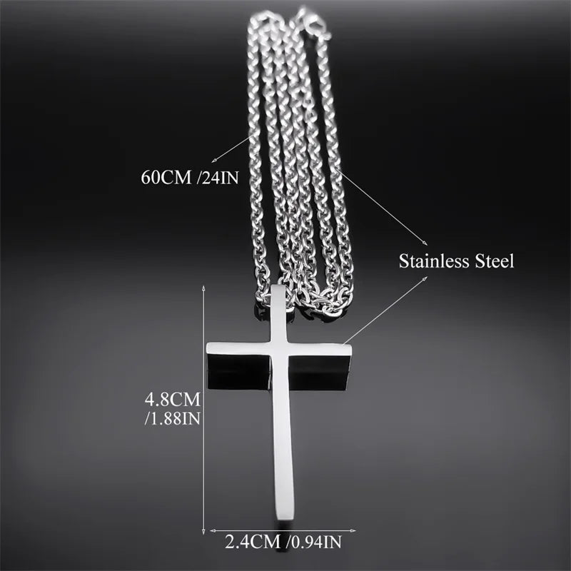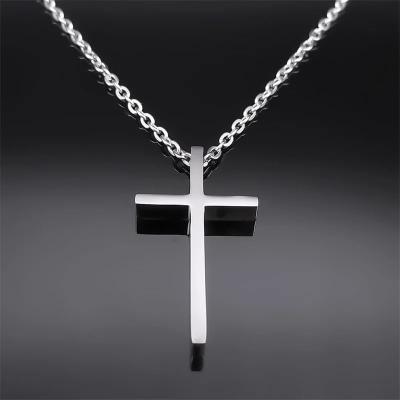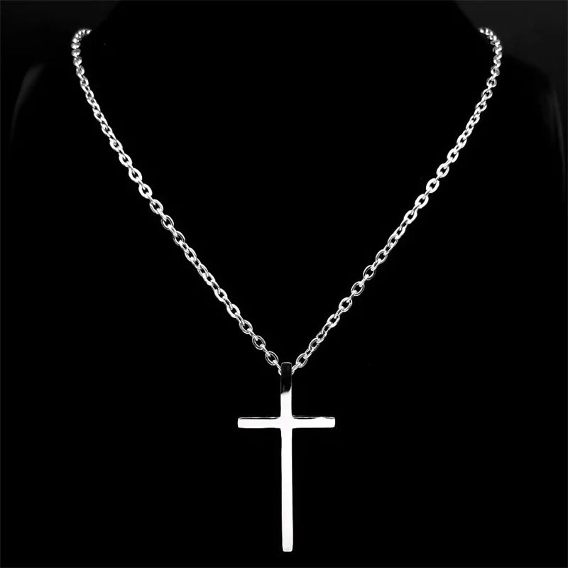 Collar con colgante de cruz simple para mujer y hombre, de acero inoxidable, color plata, con cadena de Jesucristo.