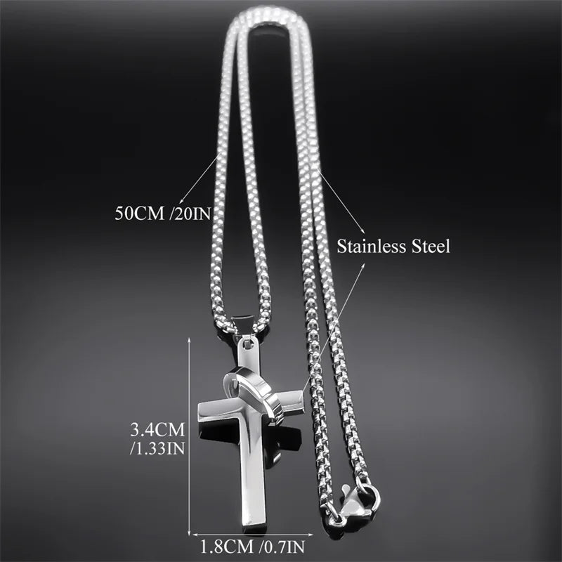 Collar con colgante de cruz simple con círculo para mujer y hombre, cadena de acero inoxidable con cruz de Cristo.