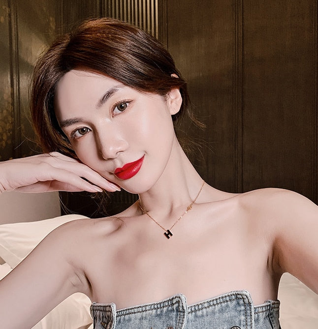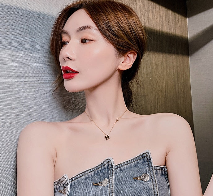 Cadena de clavícula con diseño simple y diseño de letras H para mujeres coreanas.