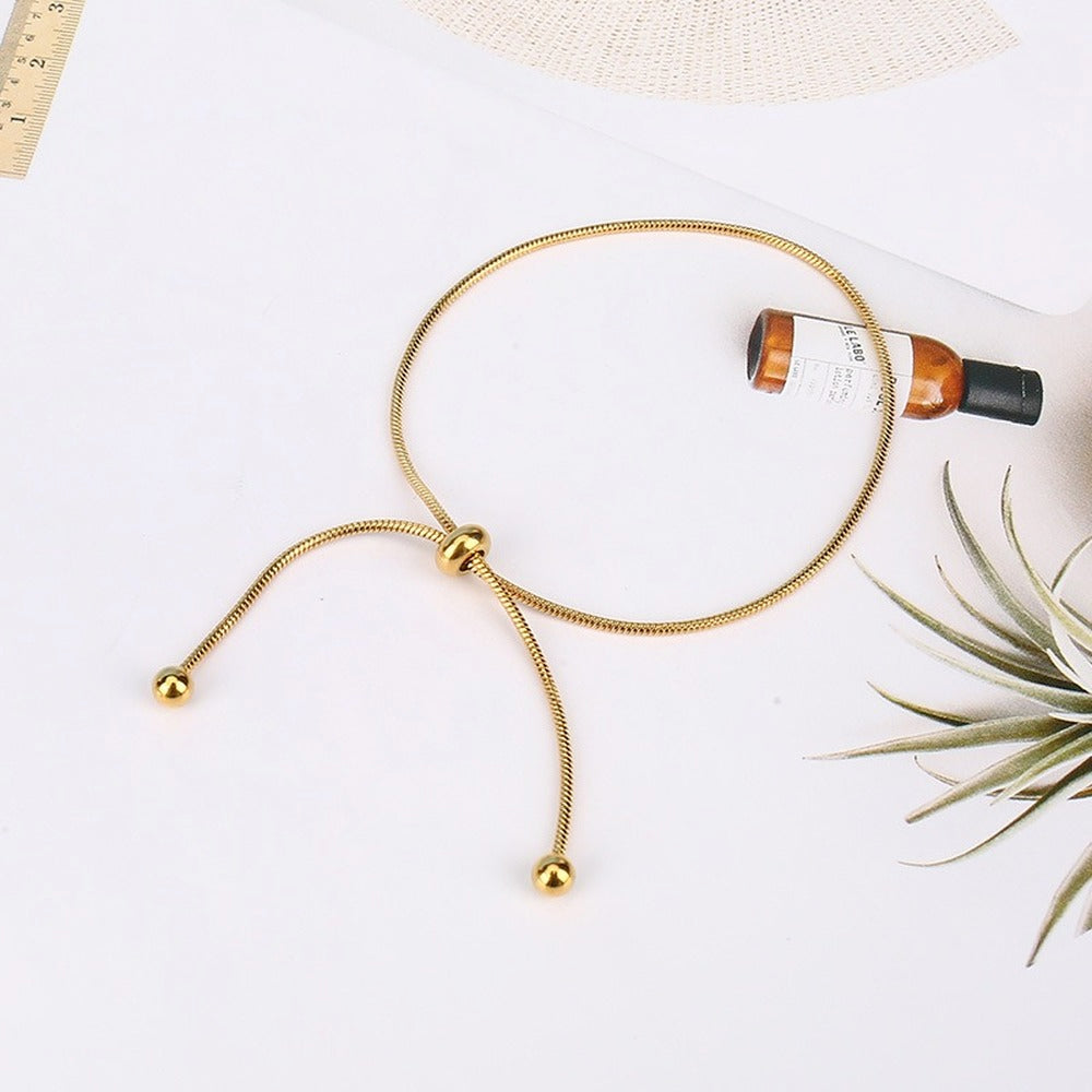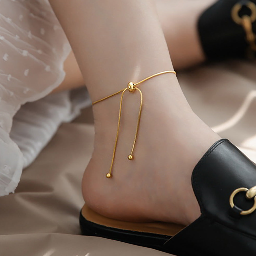 Tobilleras de diseño simple, de acero de titanio, ajustables y extraíbles, con cadena de serpiente dorada, para mujer y niña, regalo de joyería con cuentas.