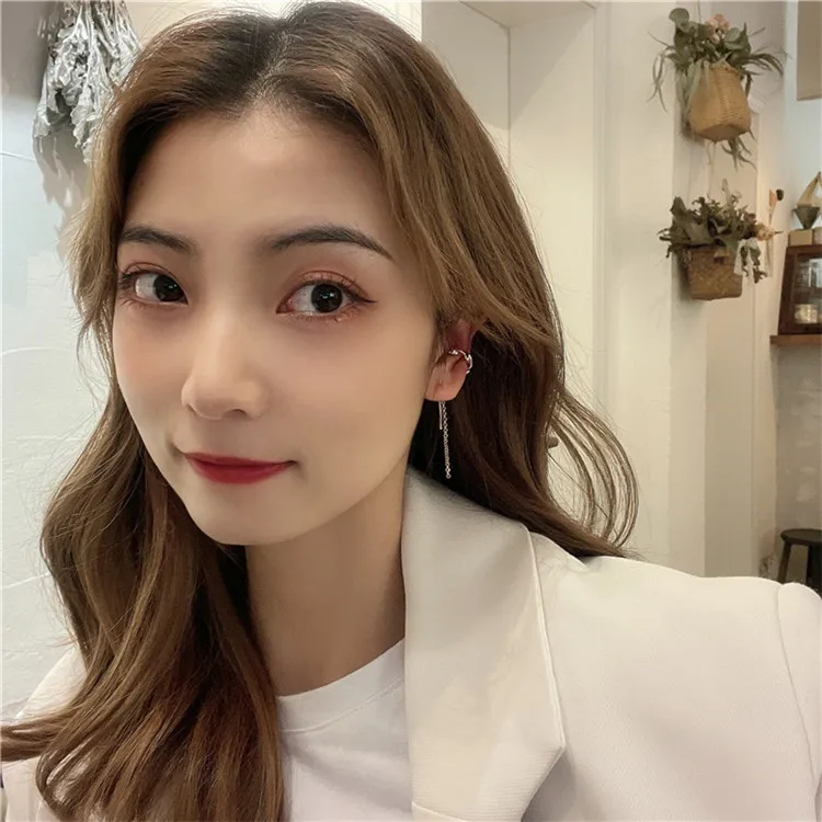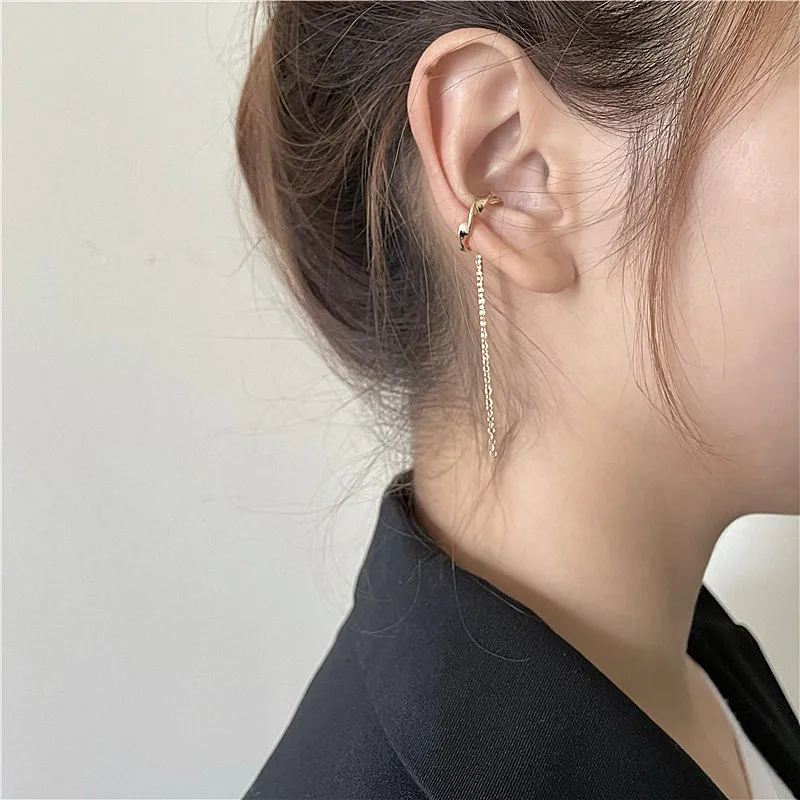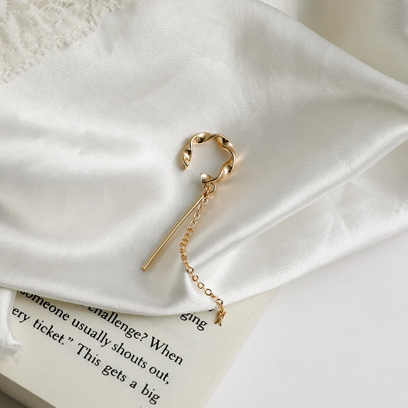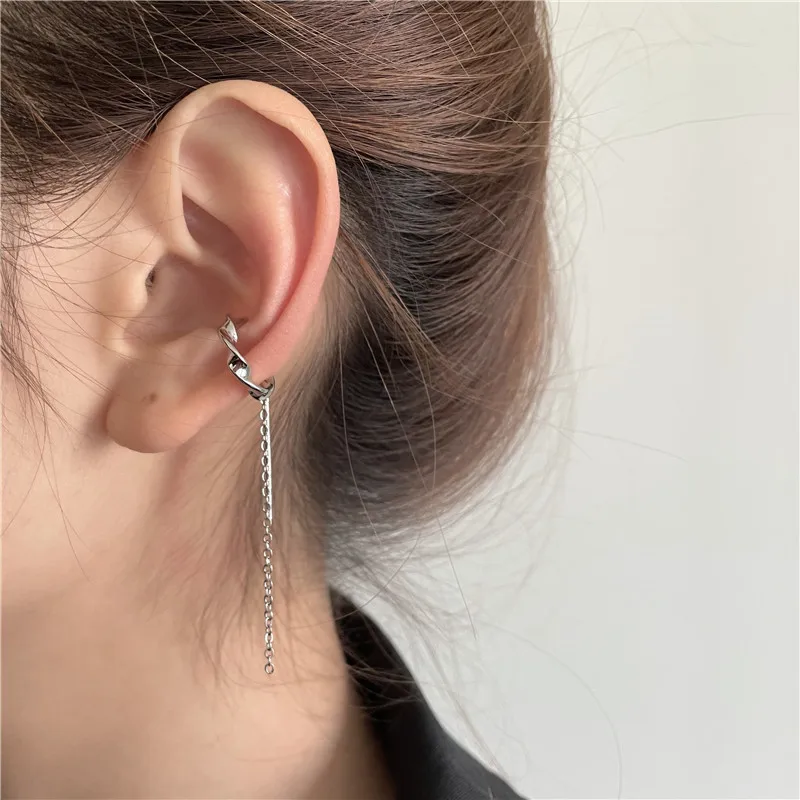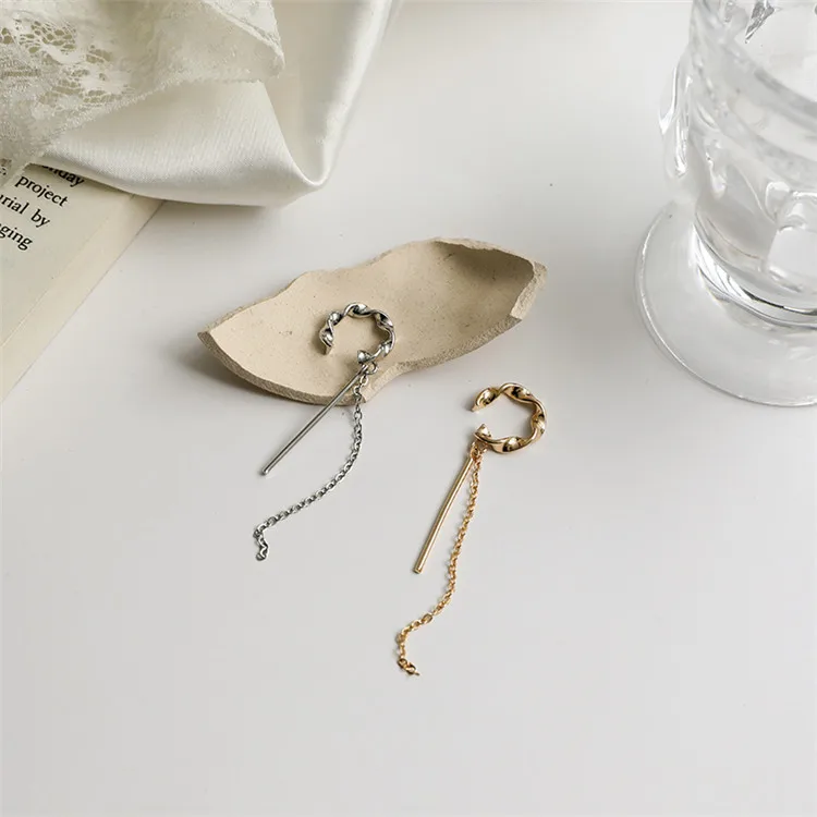 Pendientes de moda: nuevos pendientes de estilo punk sencillo con cadena geométrica retorcida y clip de aleación, joyería temperamental.