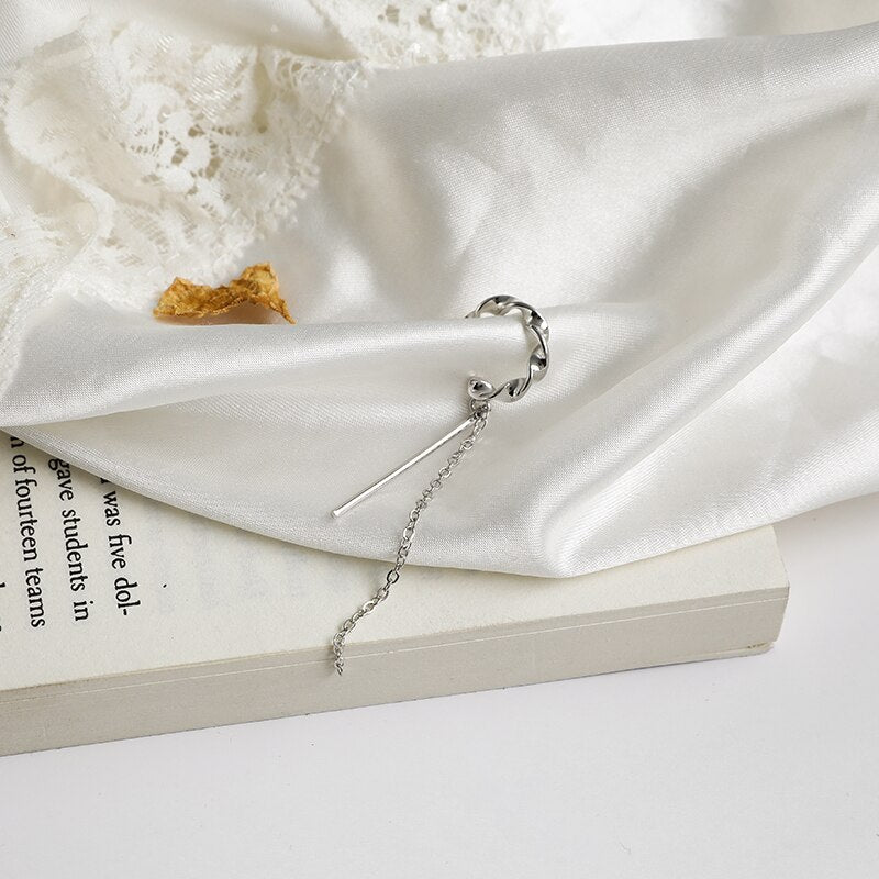 Pendiente de oreja con clip de aleación y cadena geométrica retorcida estilo punk simple