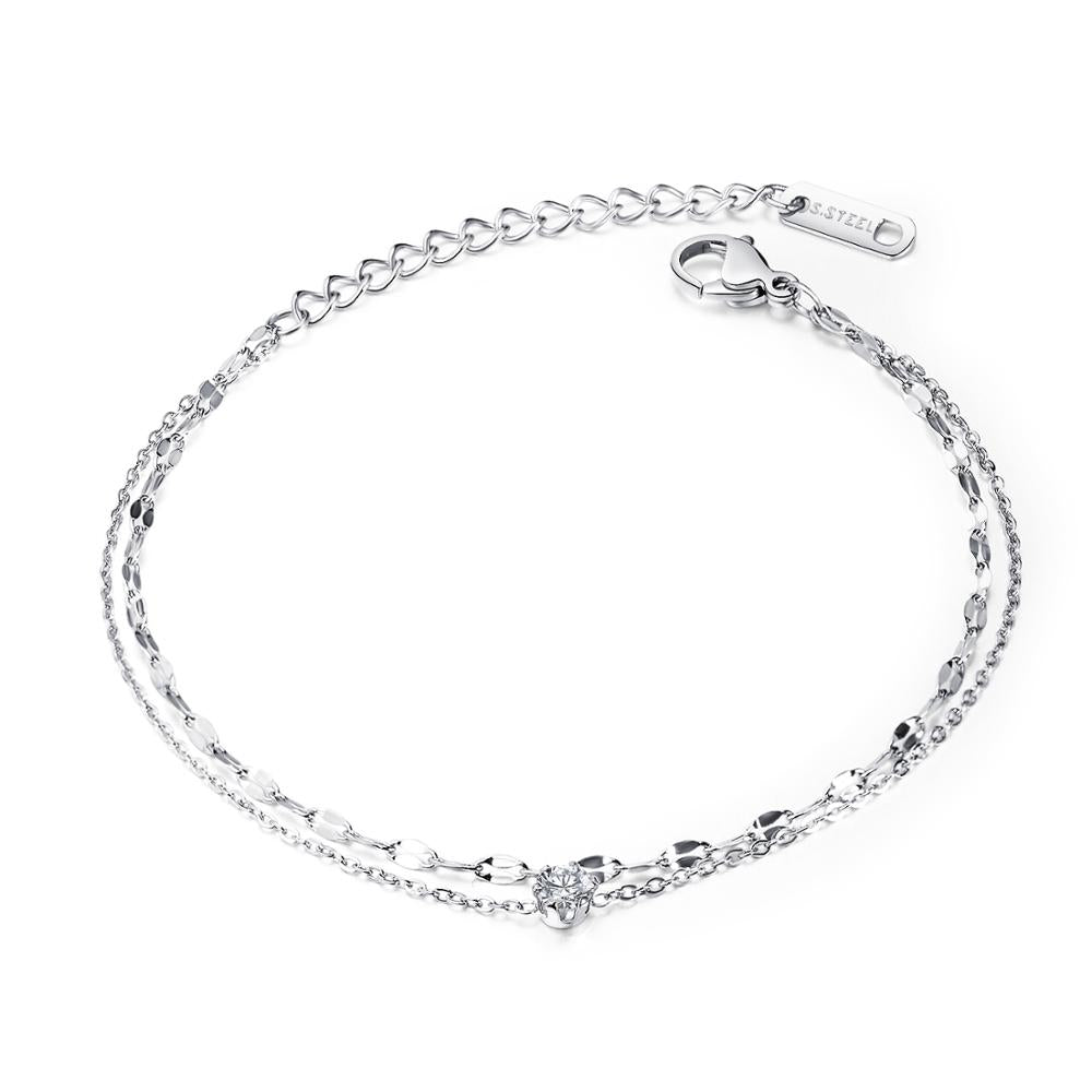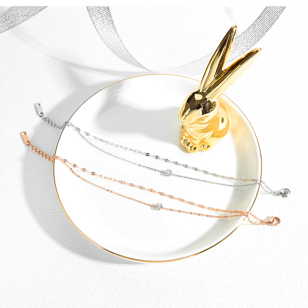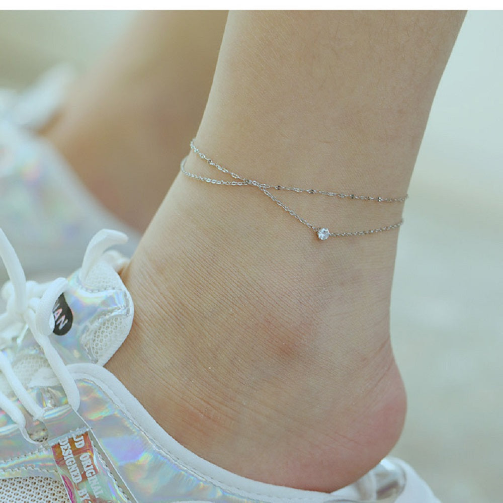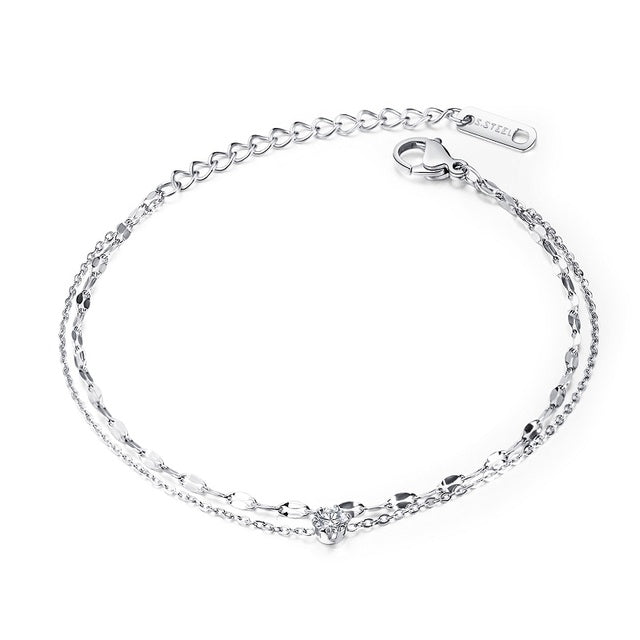 Tobilleras - Nuevas tobilleras de circonitas multicapa de color oro rosa, joyería de acero inoxidable para mujer, regalo al por mayor, no se decoloran