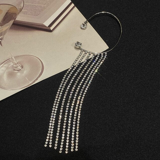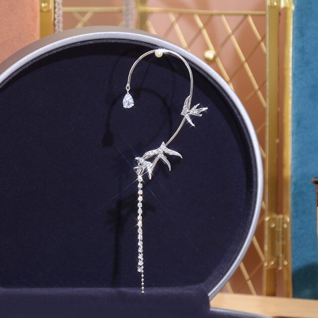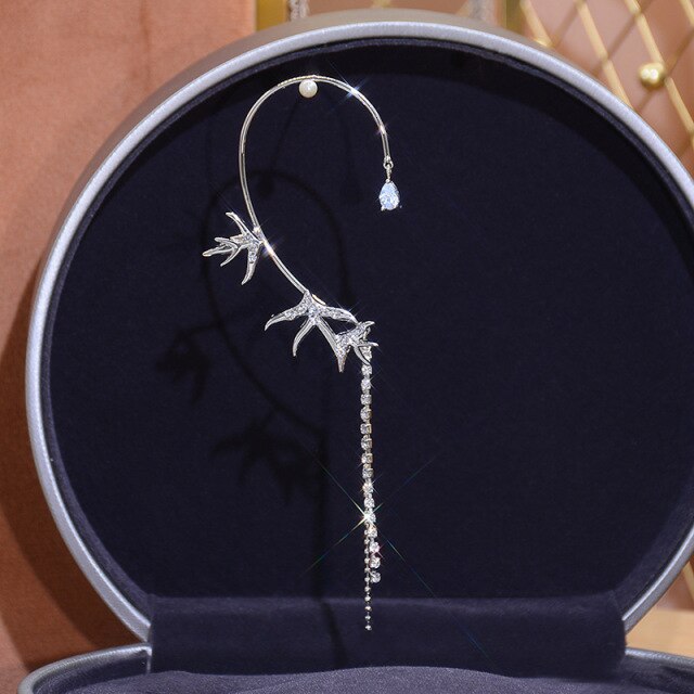 Clip para oreja de mariposa de cristal único, de lujo, brillante, para mujer, sin perforaciones