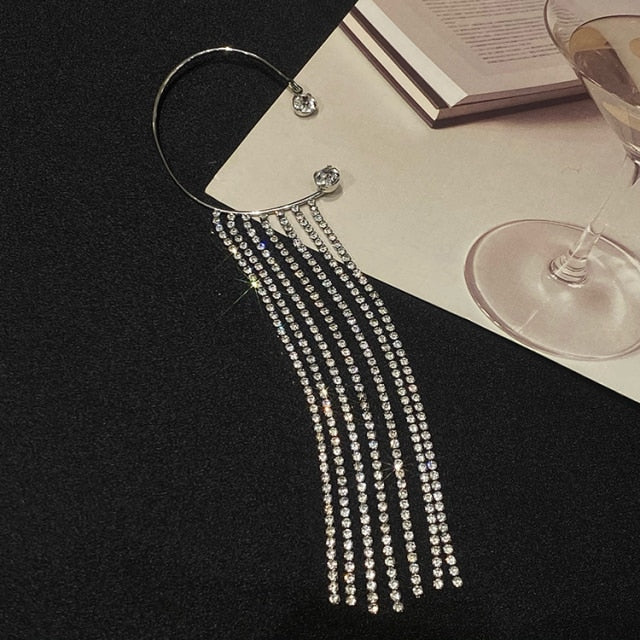 Pendientes de moda: nuevo diseño coreano, joyería de moda, clip de oreja de mariposa de cristal único, de lujo, brillante, para mujer, sin perforaciones, accesorios para fiesta de graduación.