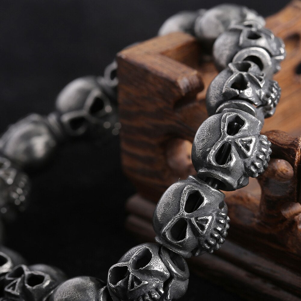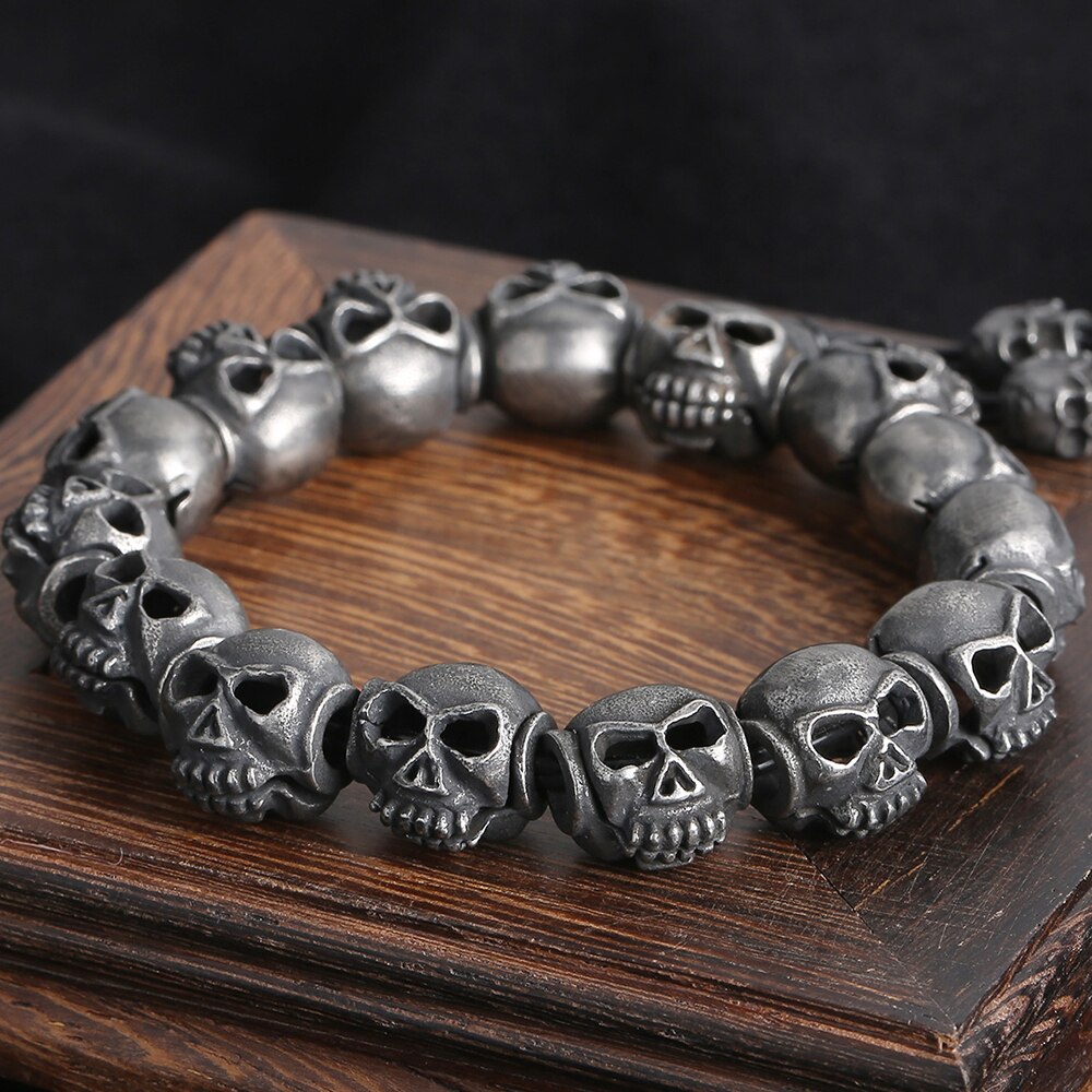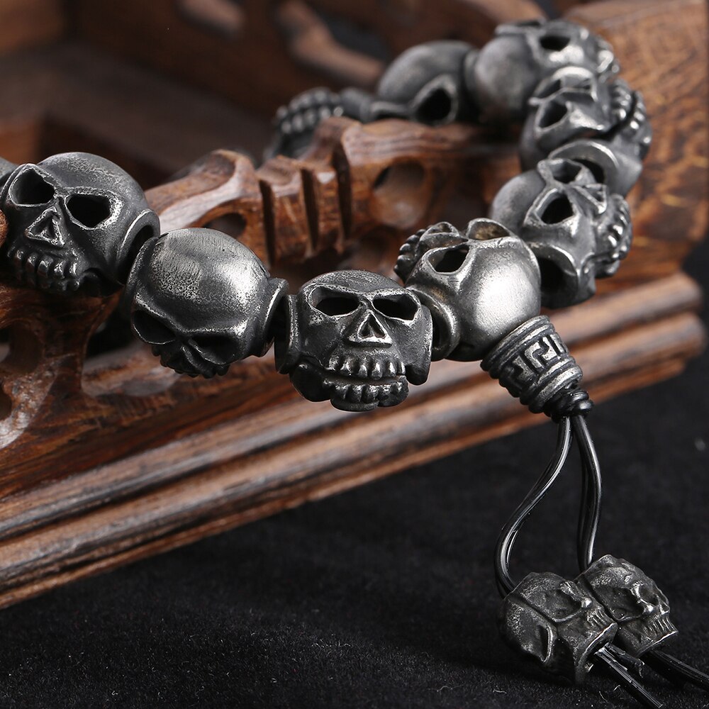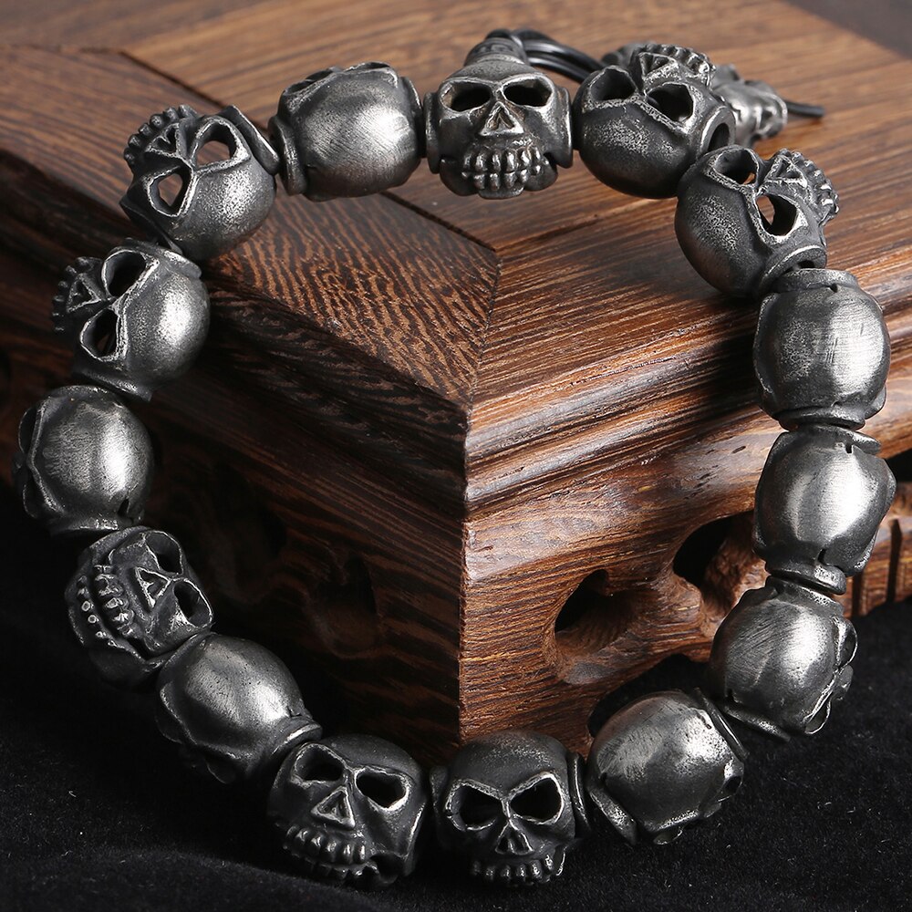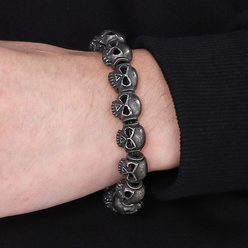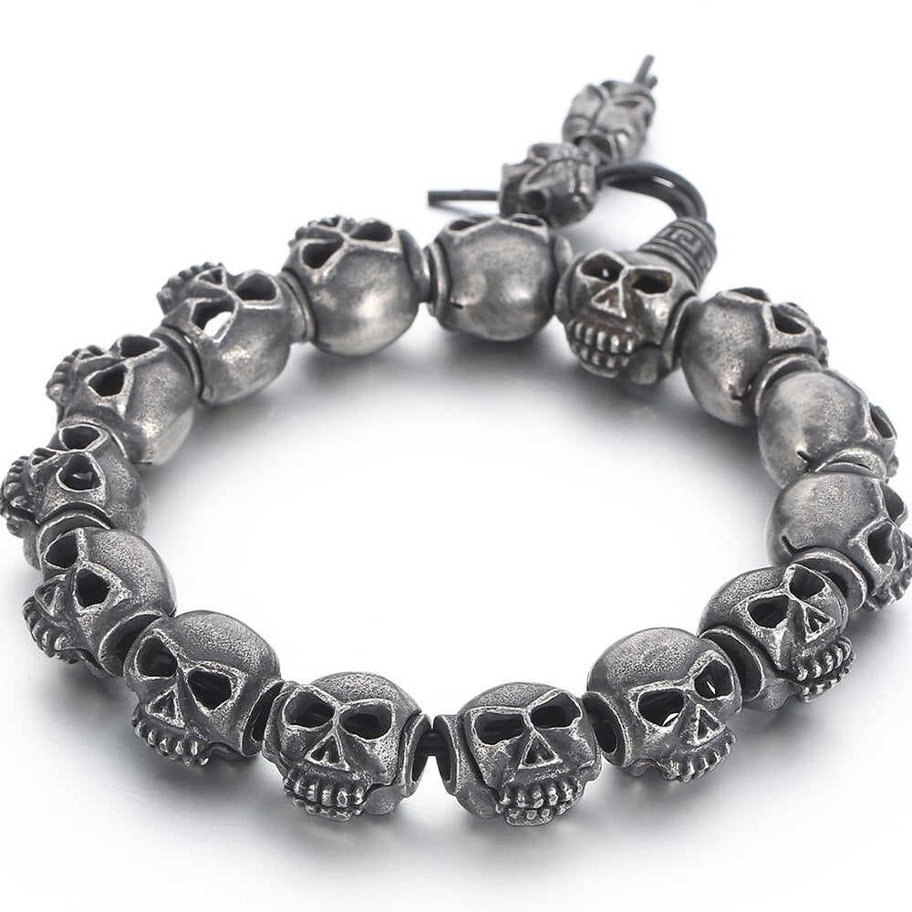 Pulseras con dijes de calavera para hombre, estilo steampunk, estilo motero, esqueleto, de acero inoxidable.