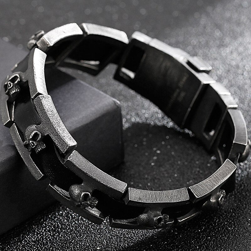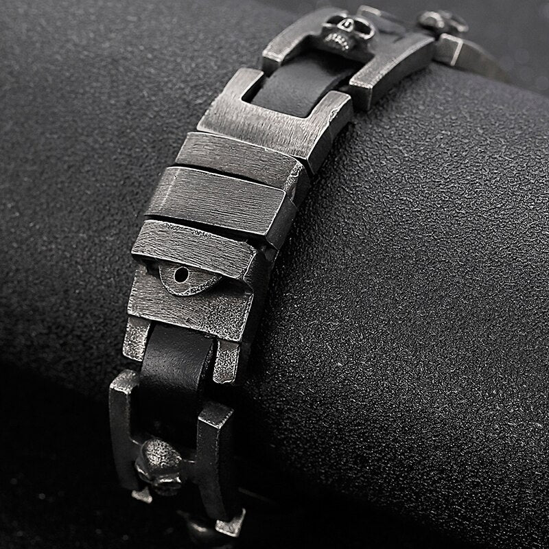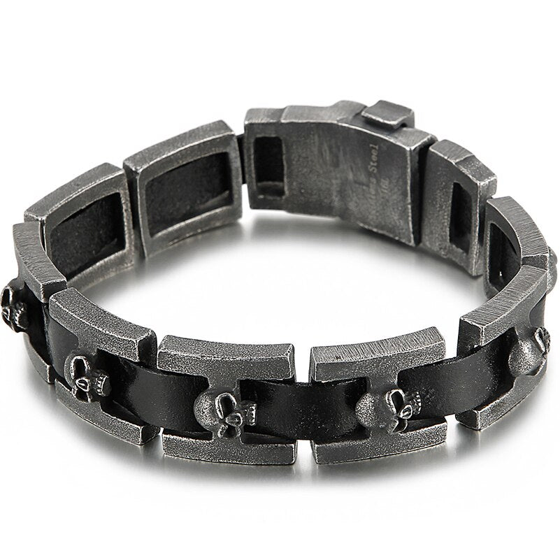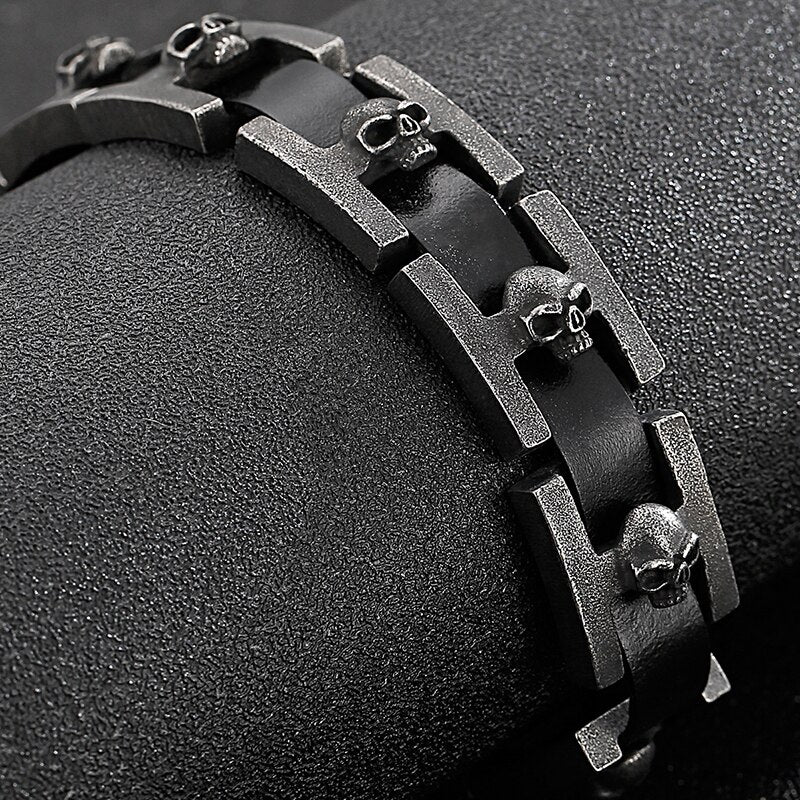 Pulseras de cuero con forma de calavera para hombre, con hebilla de cinturón, de acero inoxidable, talla grande 24/23 cm.