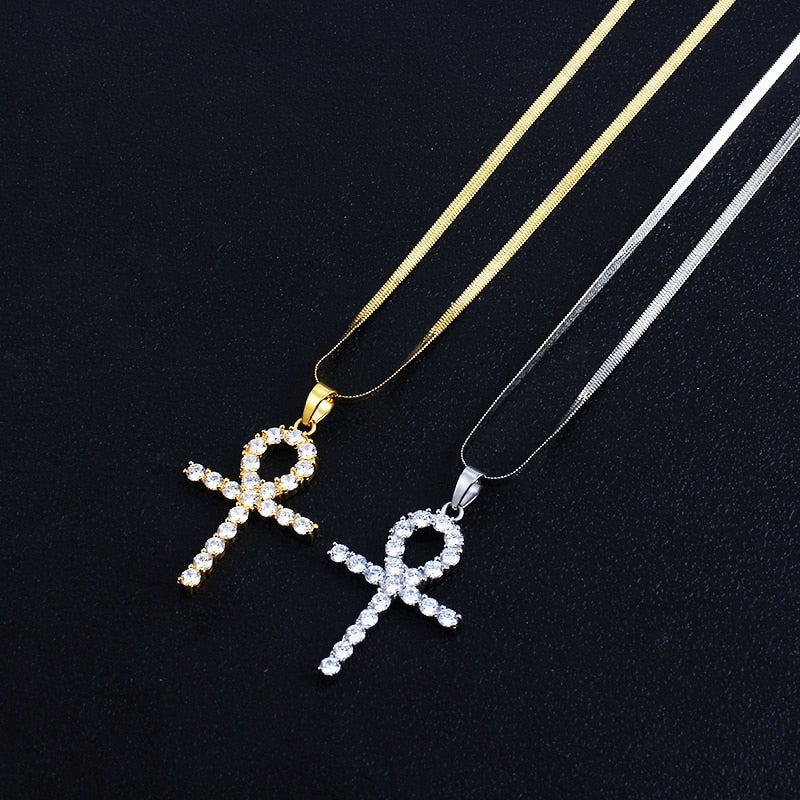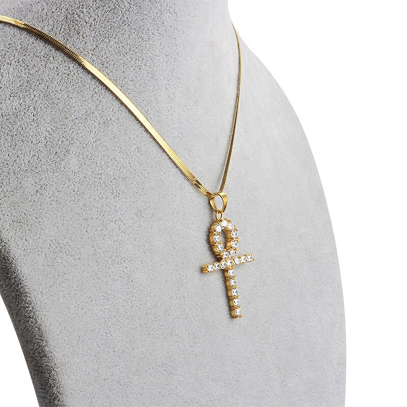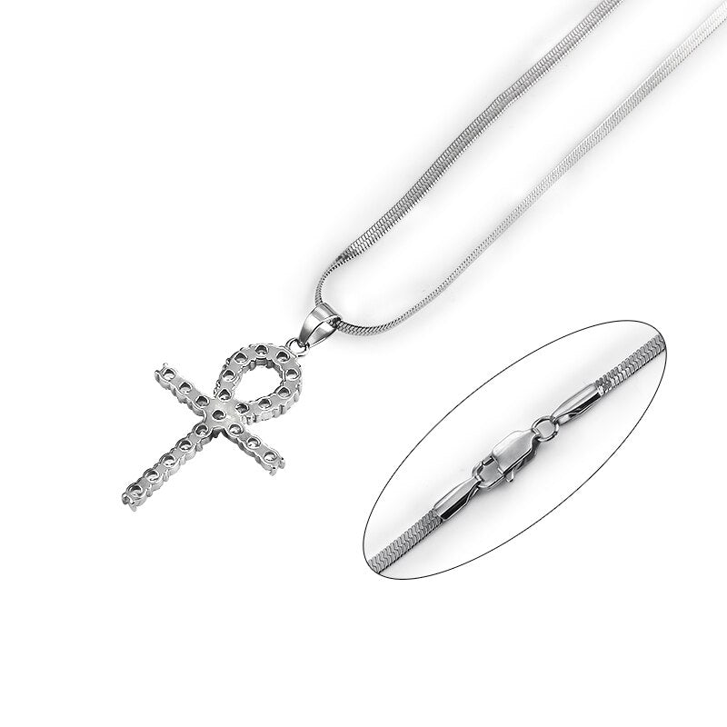 Collar con colgante de cristal y cadena de serpiente de acero inoxidable en color dorado y plateado, diseñado para hombres y mujeres.