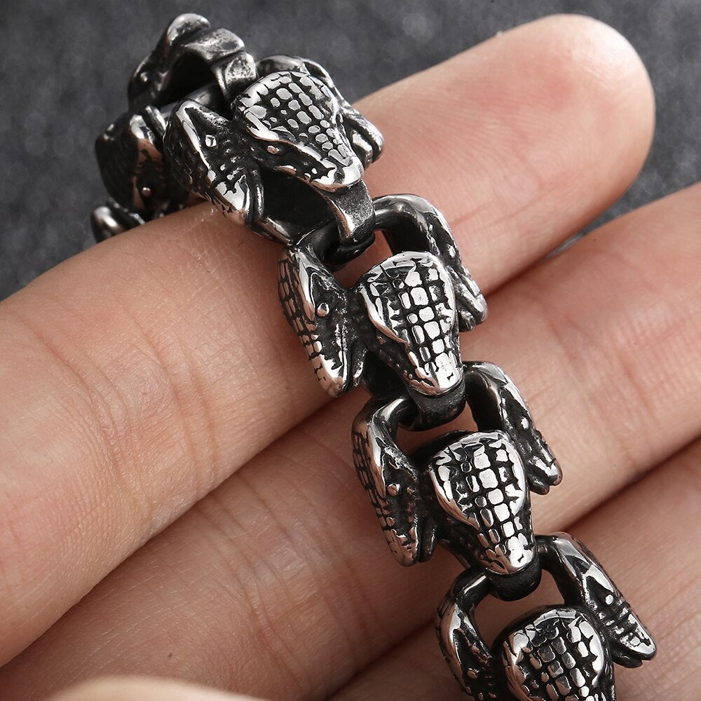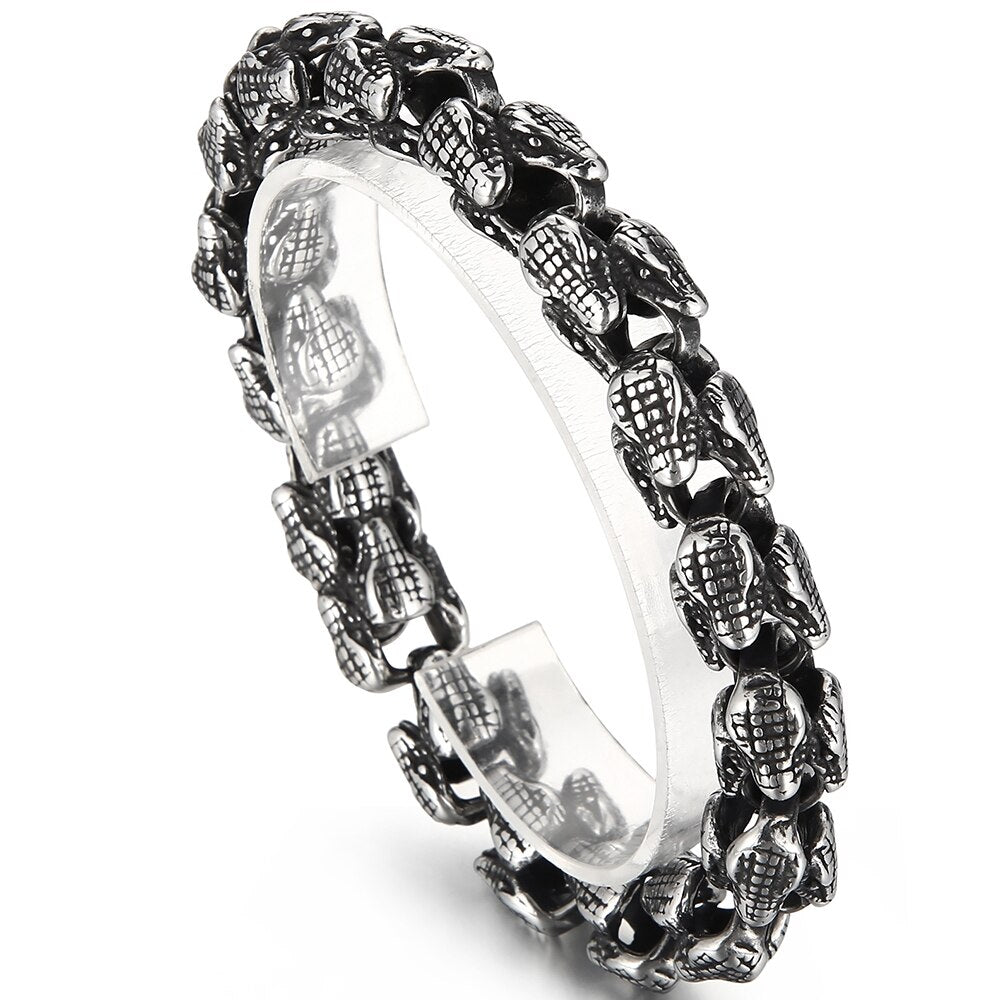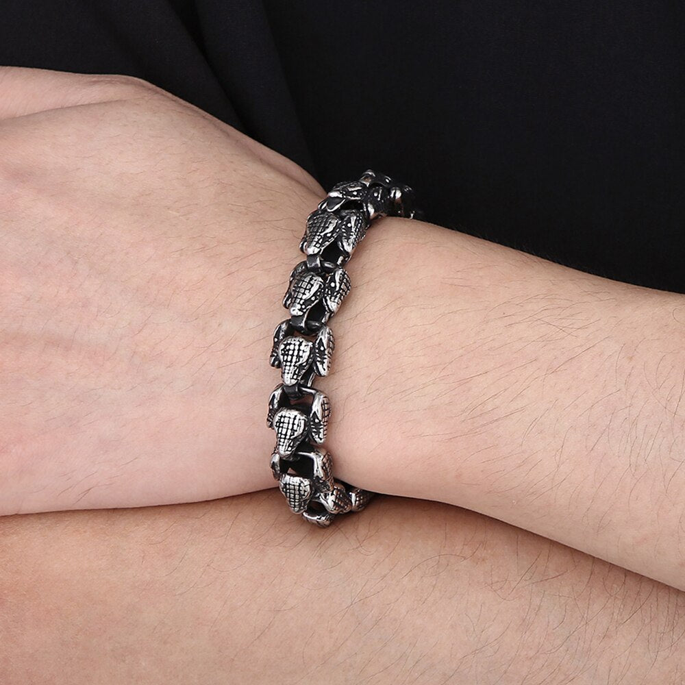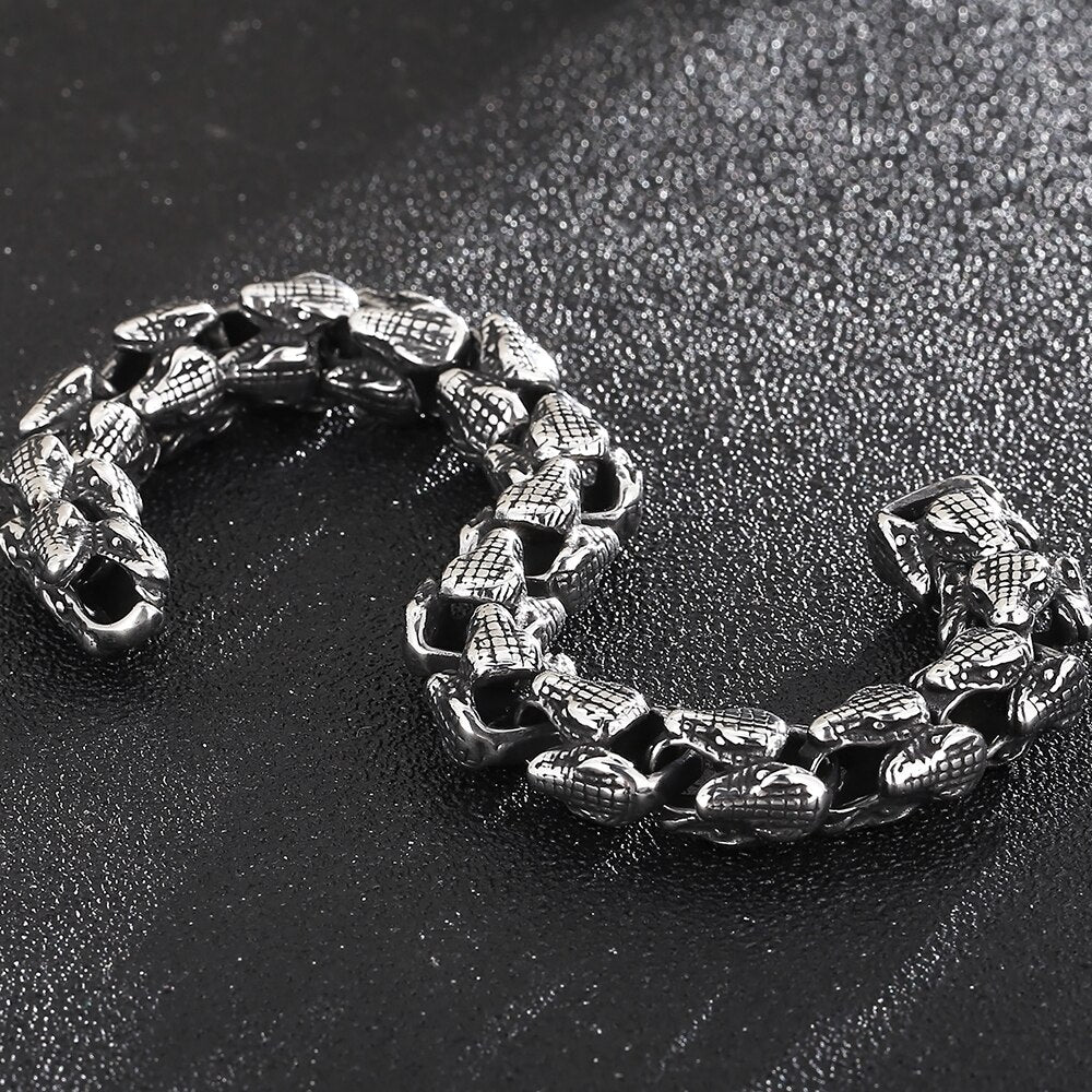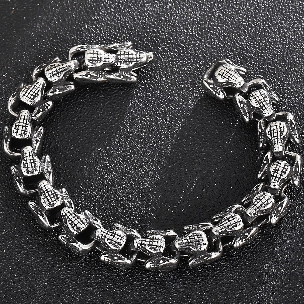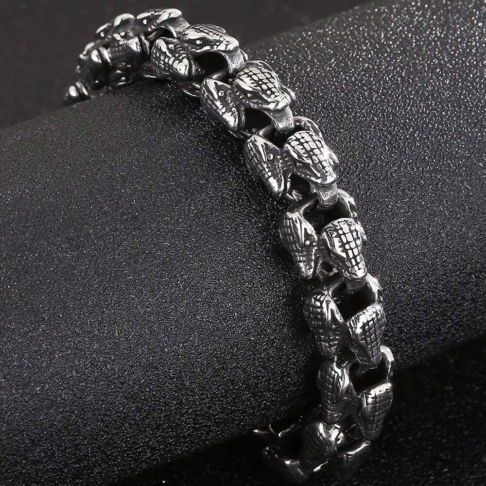 Pulsera de eslabones con cabeza de serpiente para hombre, de acero inoxidable 316L.