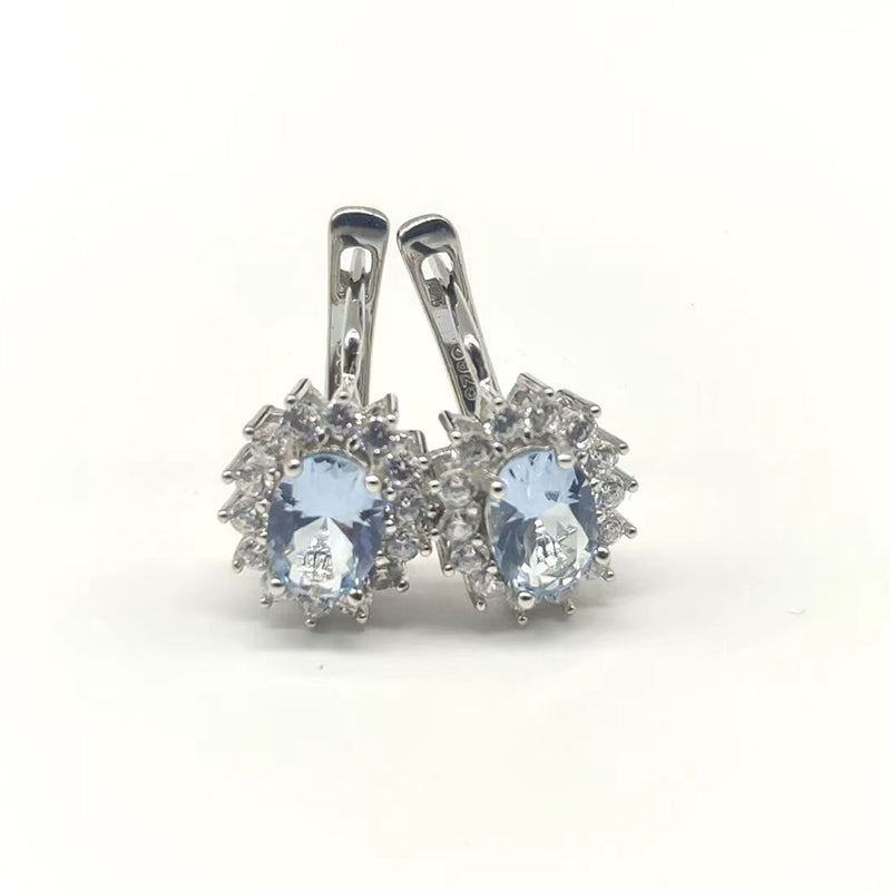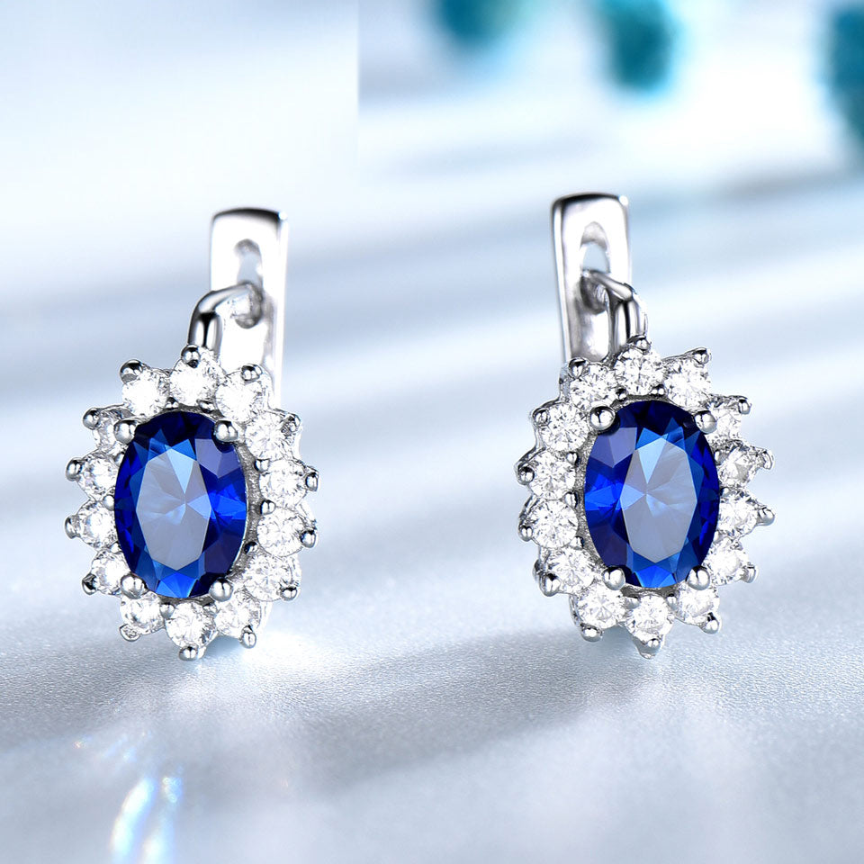 Pendientes de moda de plata de ley 925 maciza con gemas de zafiro azul para mujer, joyería fina para boda, compromiso, regalo de San Valentín.