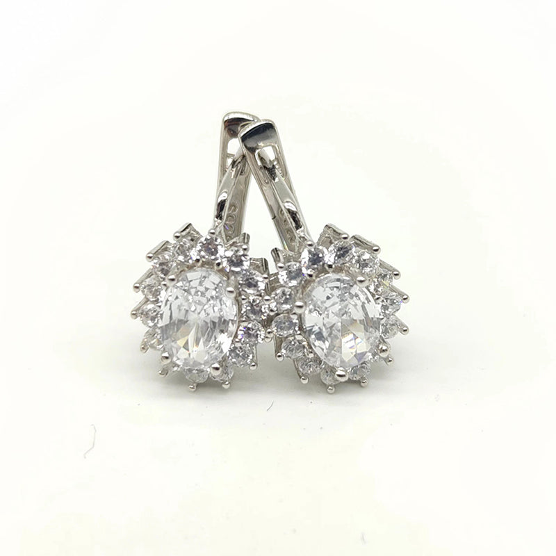 Pendientes de clip con piedras preciosas de plata de ley 925 maciza para mujer