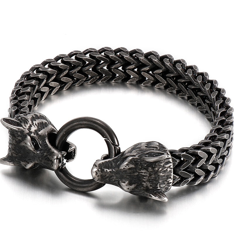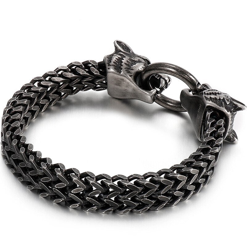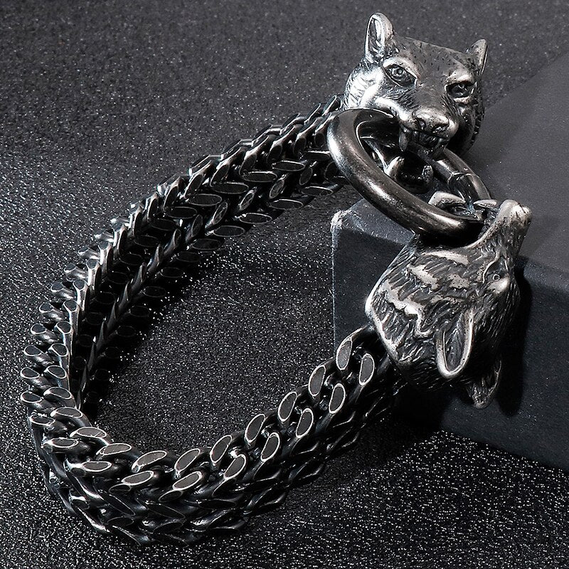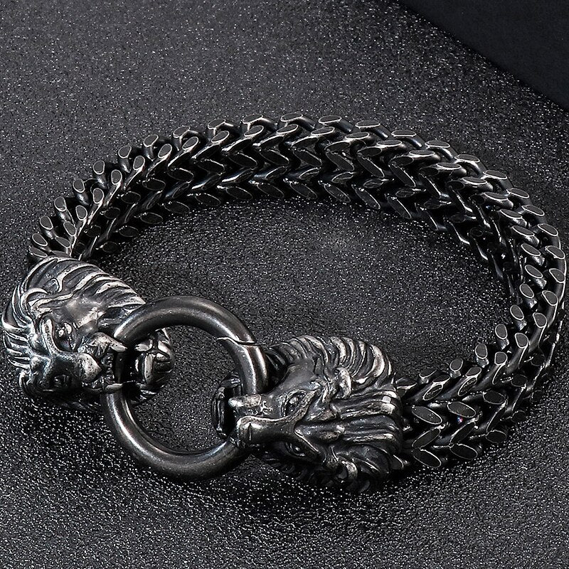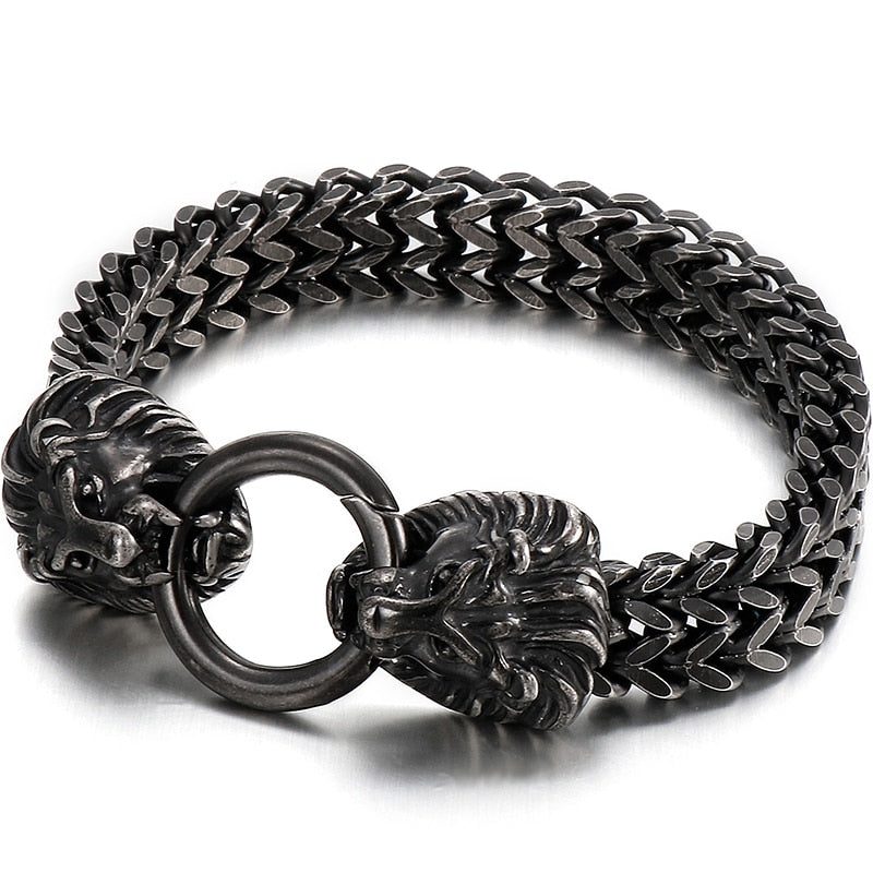 Pulseras de acero inoxidable negro macizo con diseño de calavera gótica, león y lobo para hombre, joyería vintage para hombre, regalo para novio, padre y esposo.