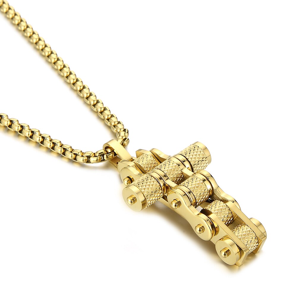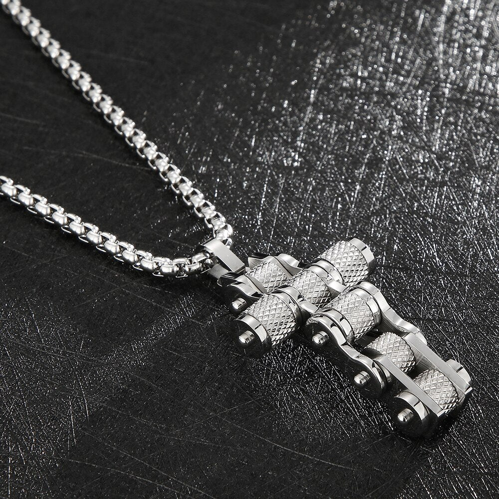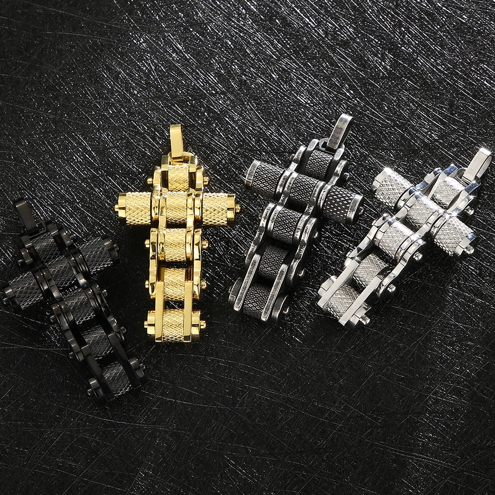 Collar con colgante de cadena de bicicleta de acero inoxidable macizo para hombre, colgante de cruz cristiana, joyería para motociclistas, accesorios de joyería.