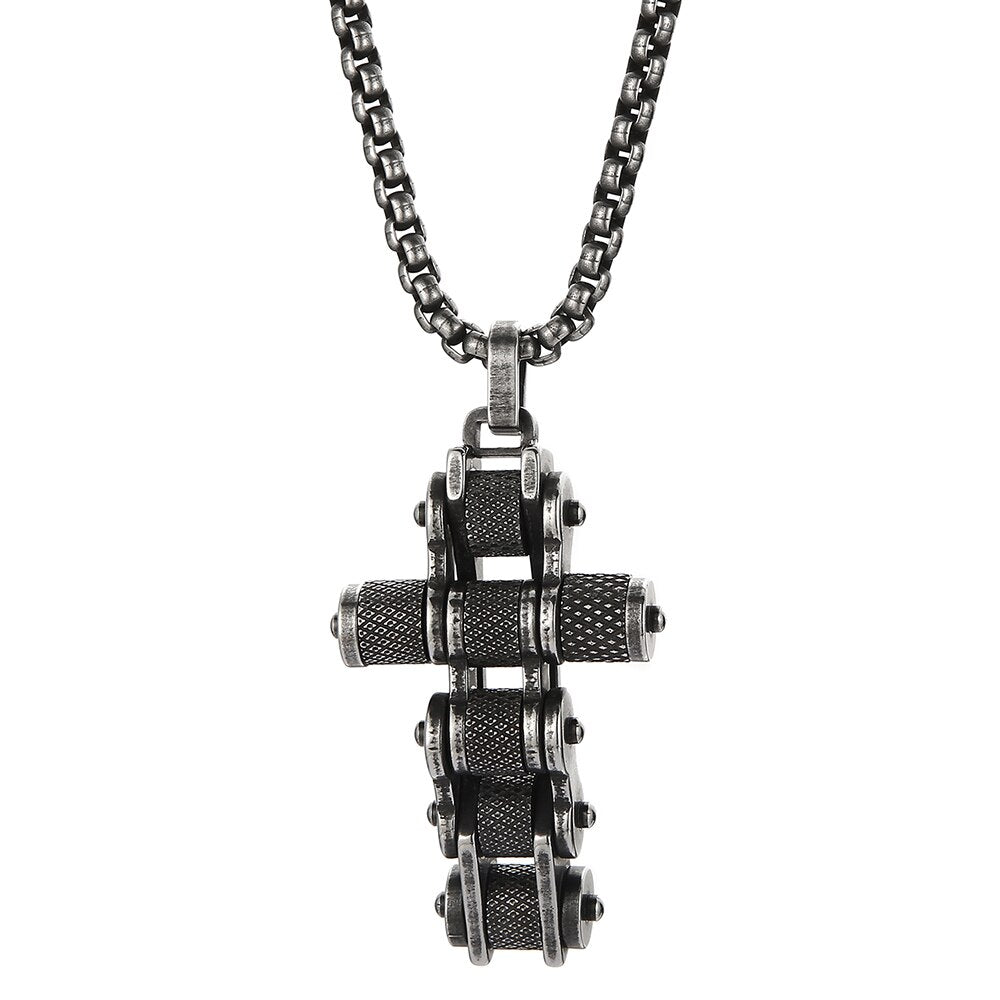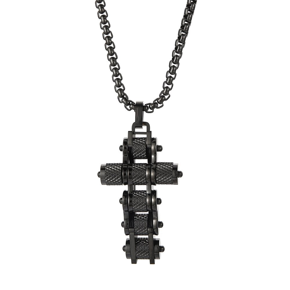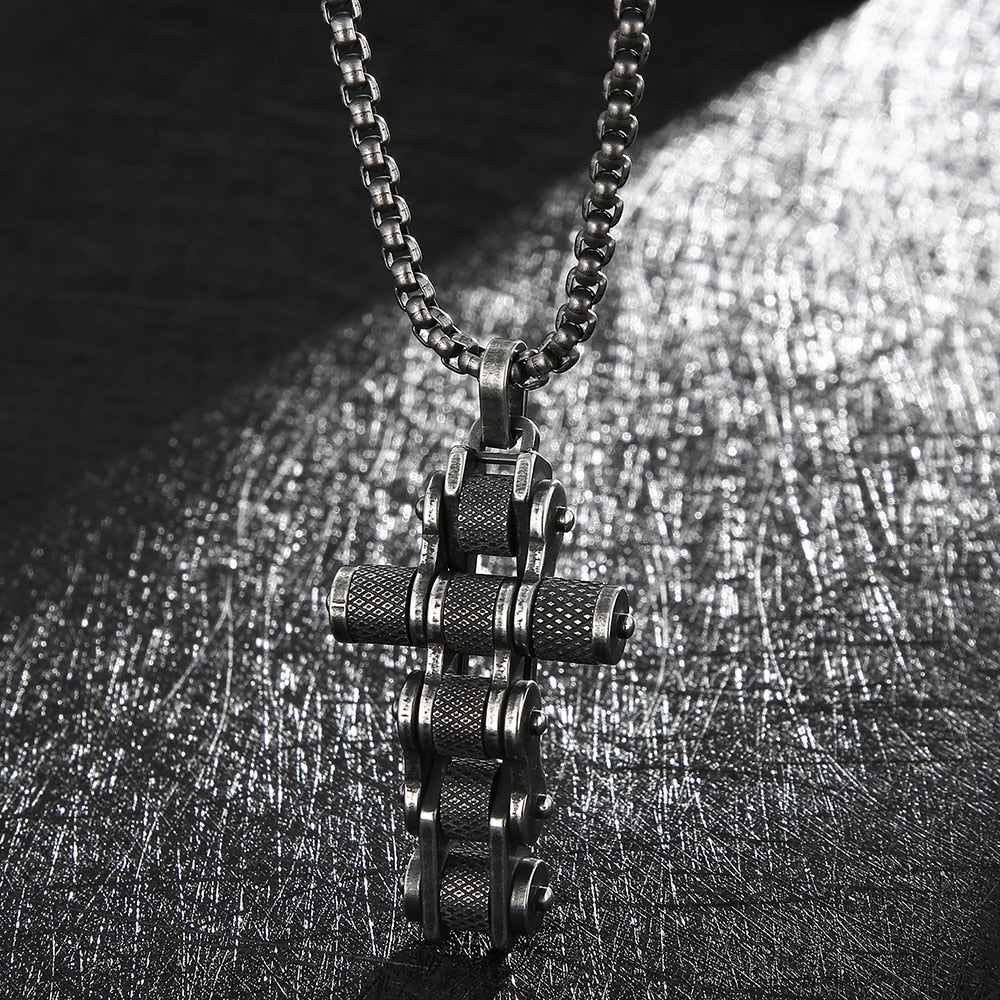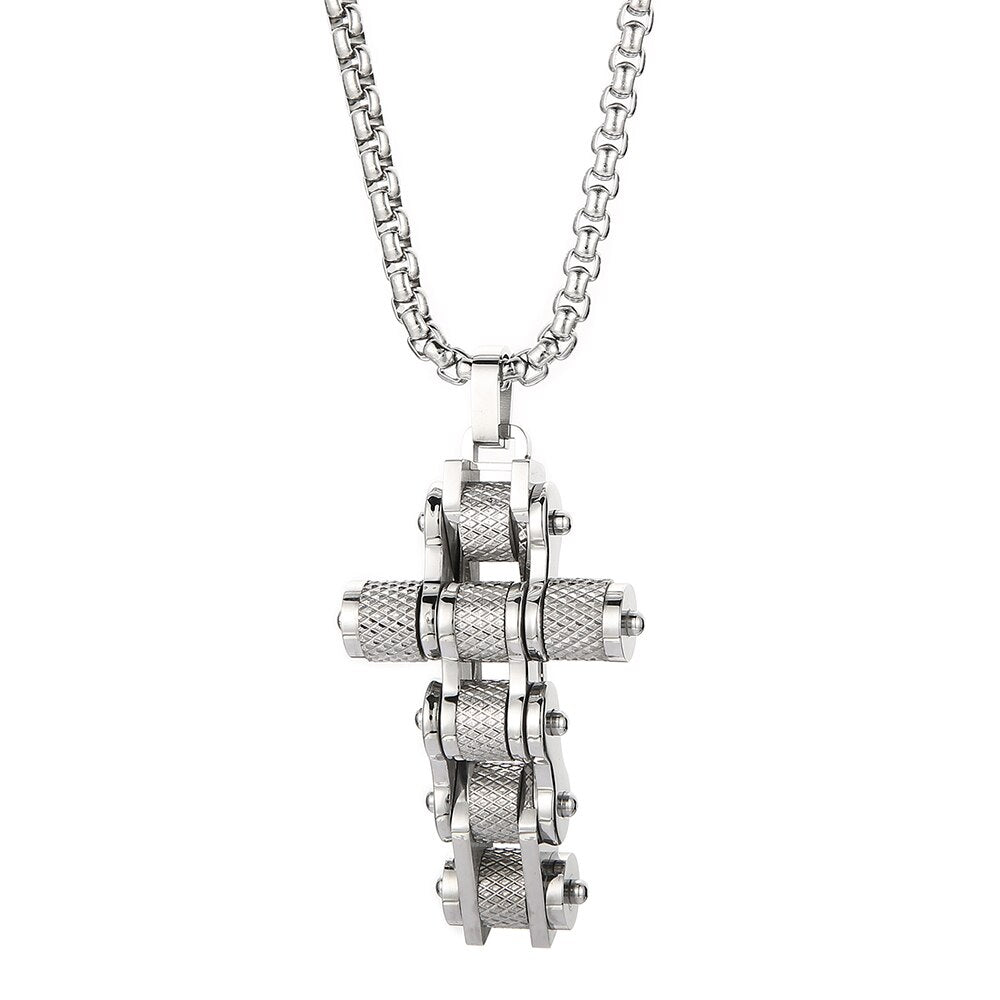 Collar con colgante de cadena de bicicleta de acero inoxidable macizo para hombre, colgante de cruz cristiana, joyería para motociclistas, accesorios de joyería.