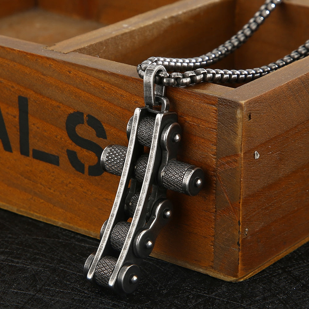 Collar con colgante de cadena de bicicleta de acero inoxidable macizo para hombre