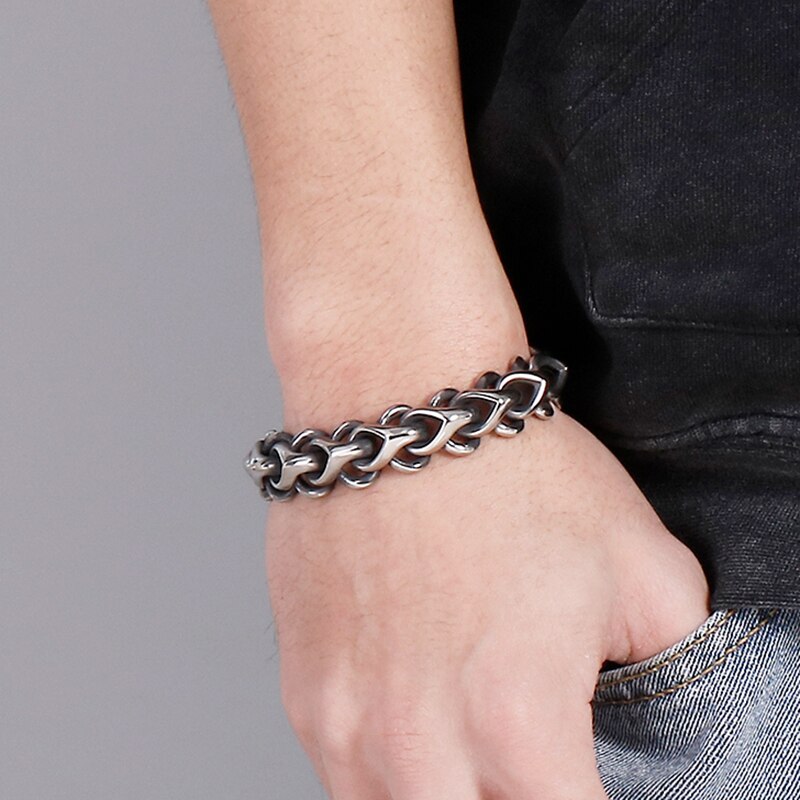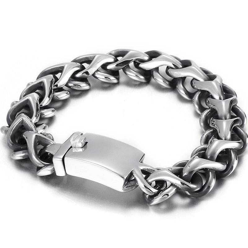 Pulsera de acero inoxidable macizo para hombre, brazalete de metal vintage, accesorios de joyería, regalo para el Día del Padre.