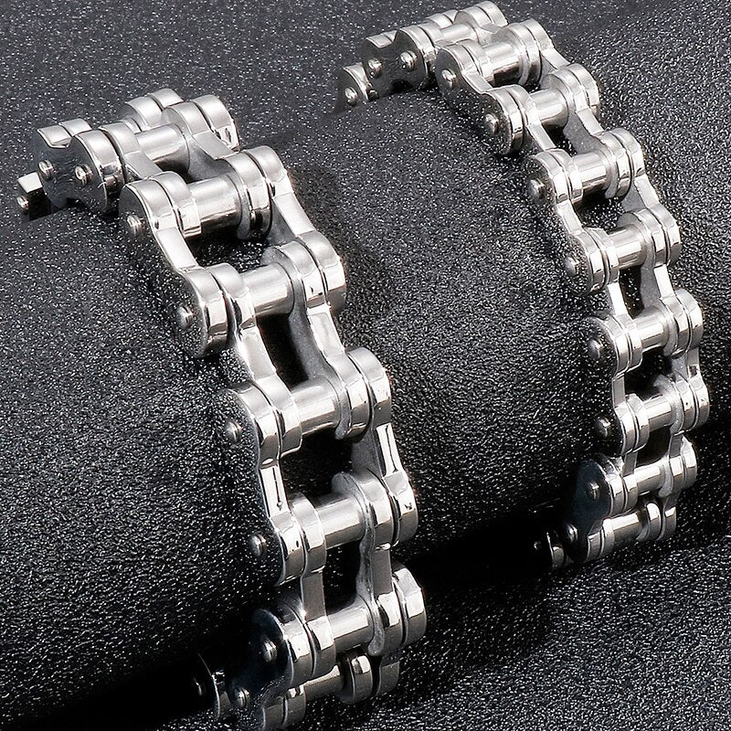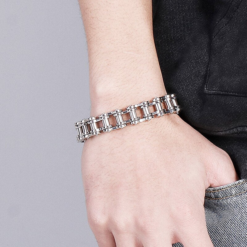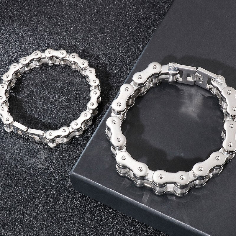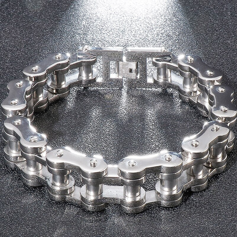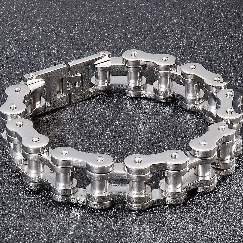Pulseras de acero inoxidable macizo para hombre, cadena de eslabones para bicicleta y motocicleta de 15/19 mm.