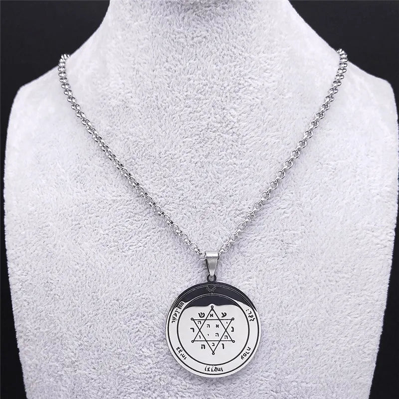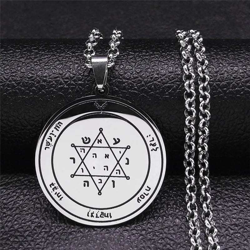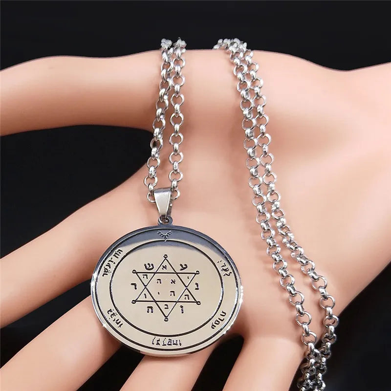 Collar de Salomón de acero inoxidable para hombre, talismán para adquirir gloria, honores, riquezas y tranquilidad mental.