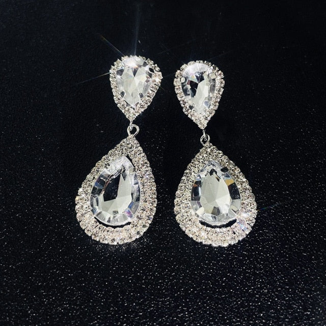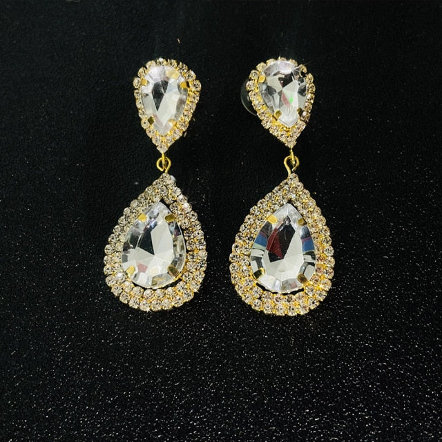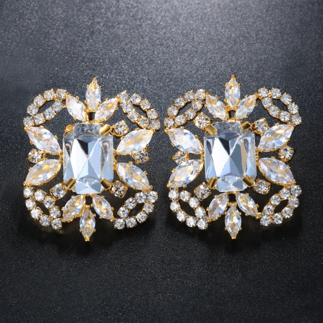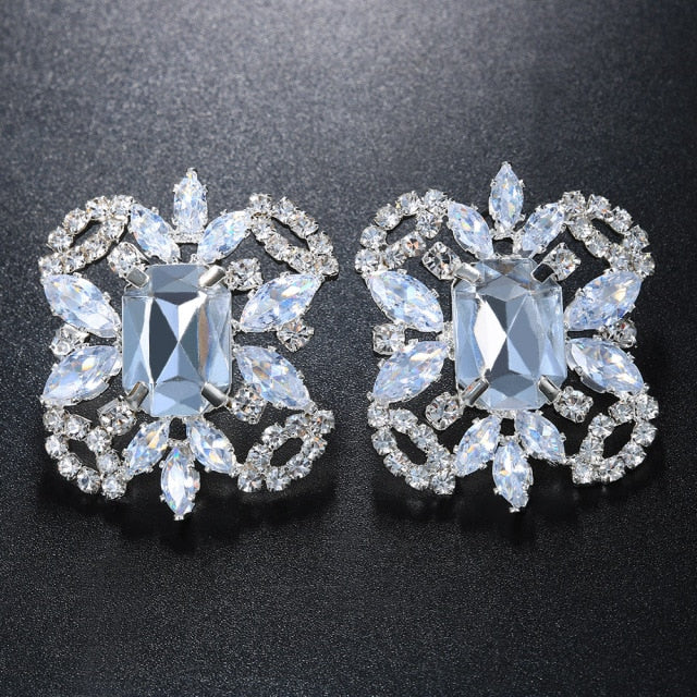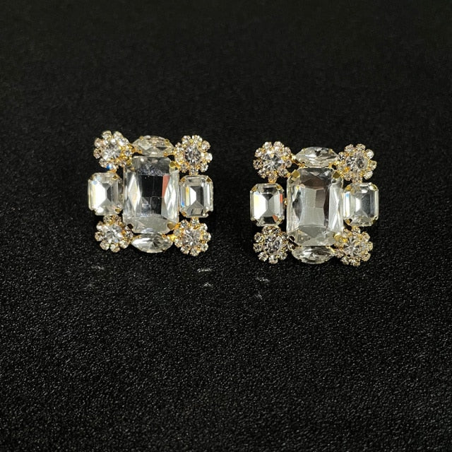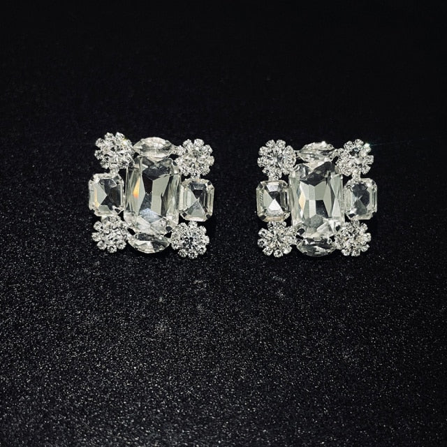 Pendientes de moda: nuevos pendientes de clip cuadrados sin agujero, joyería de boda para mujer, grandes pendientes de clip de diamantes de imitación de cristal transparente para mujer
