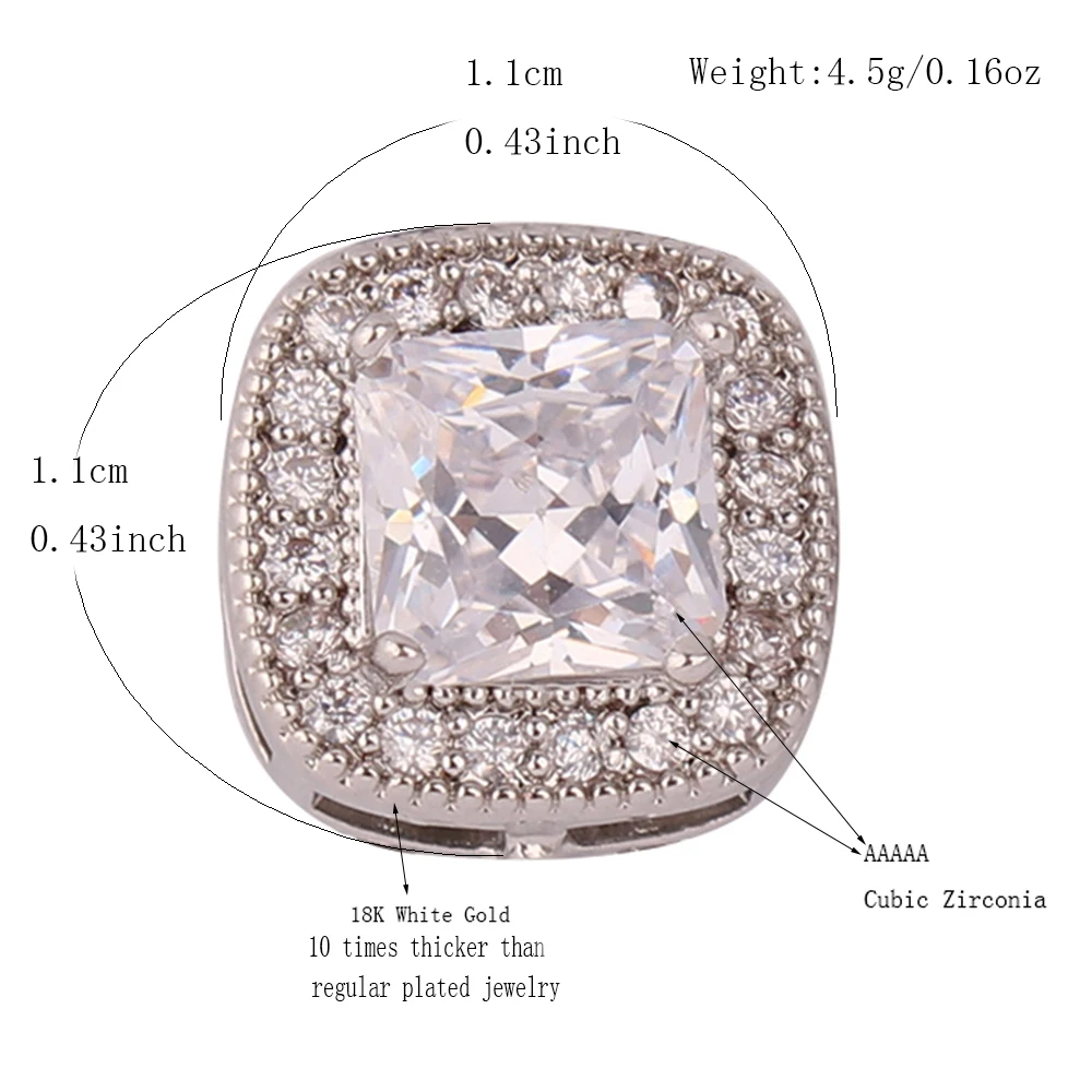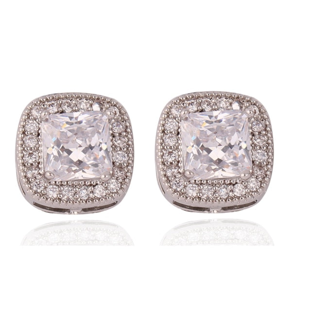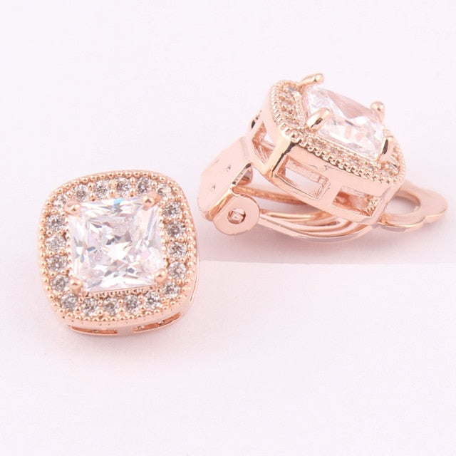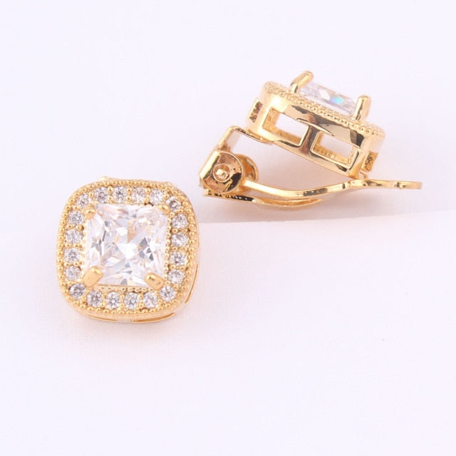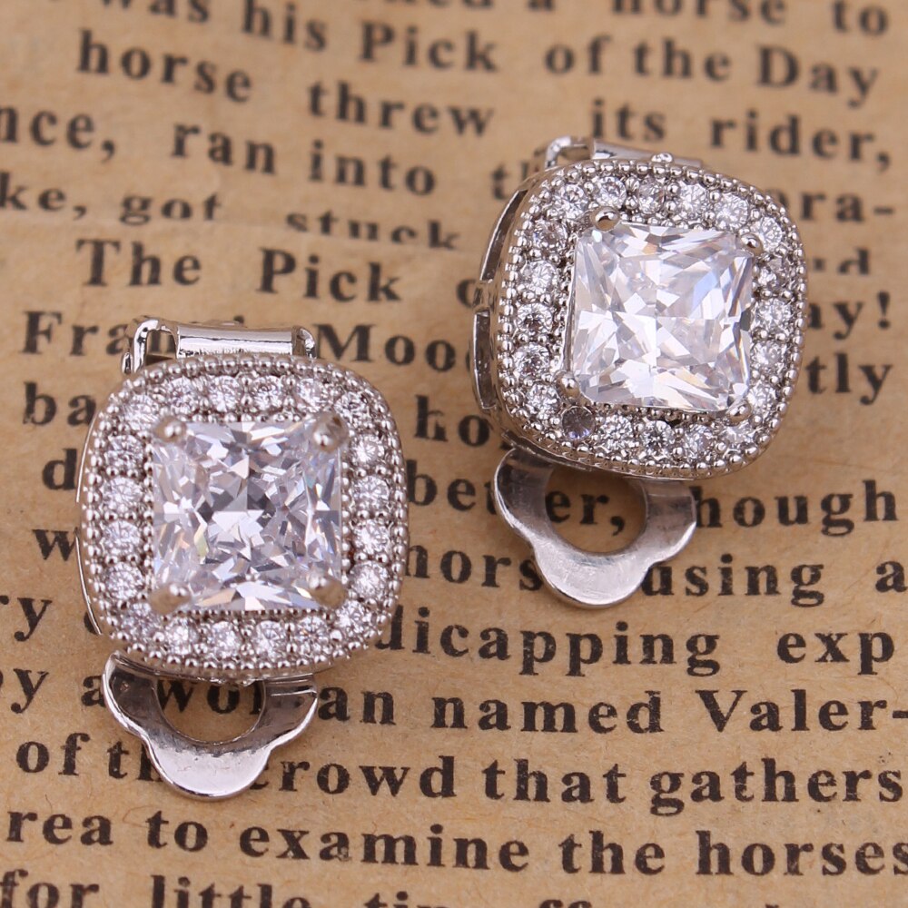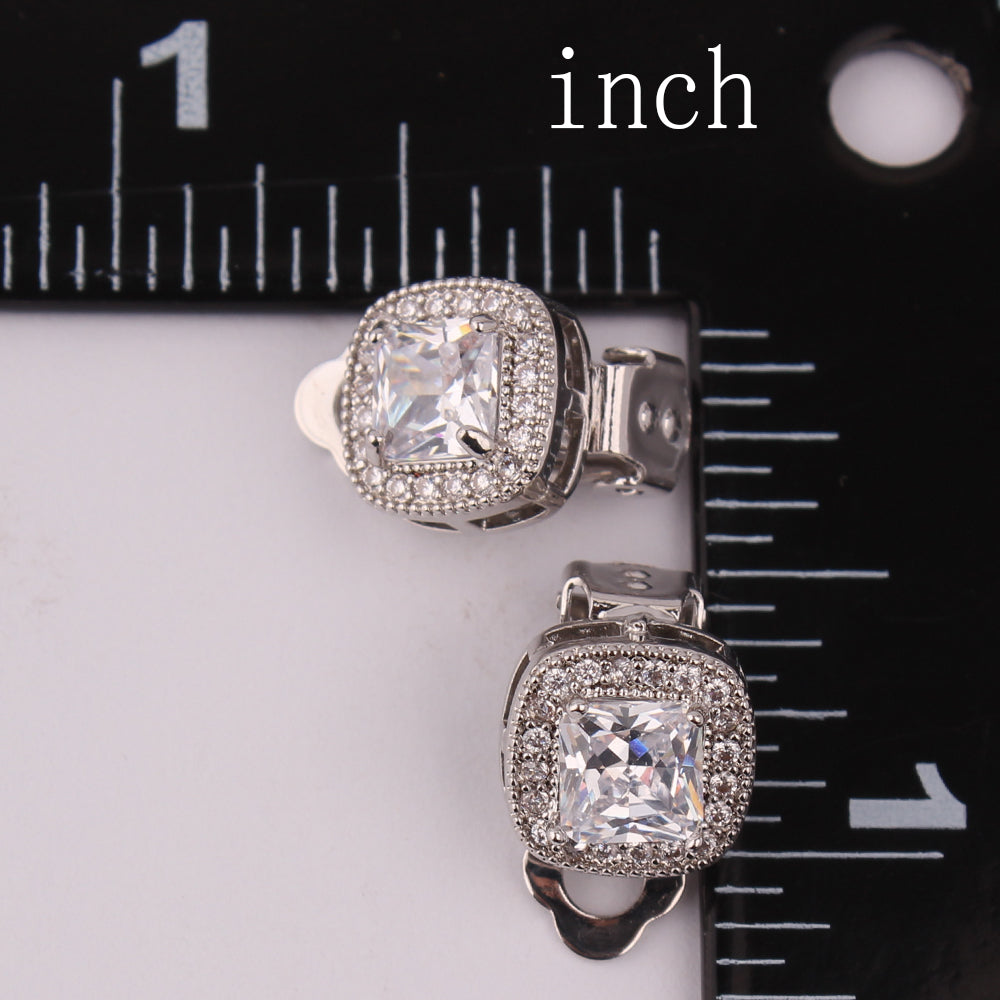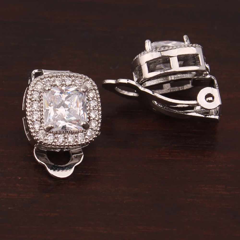 Pendientes de moda: nuevos pendientes de clip geométricos cuadrados para mujer, de lujo, para fiestas, bodas, damas de honor, con circonita cúbica, sin agujero.