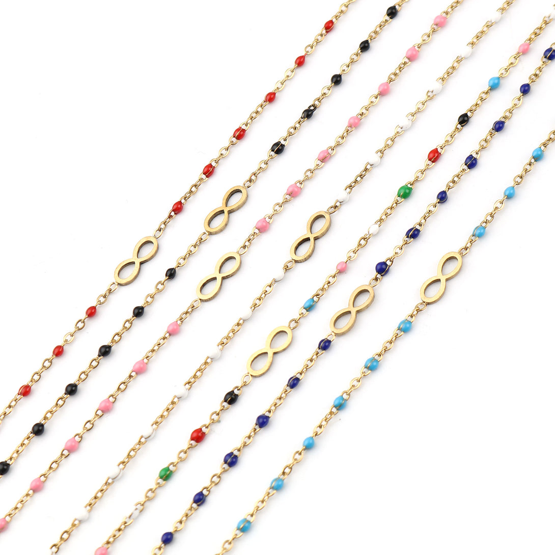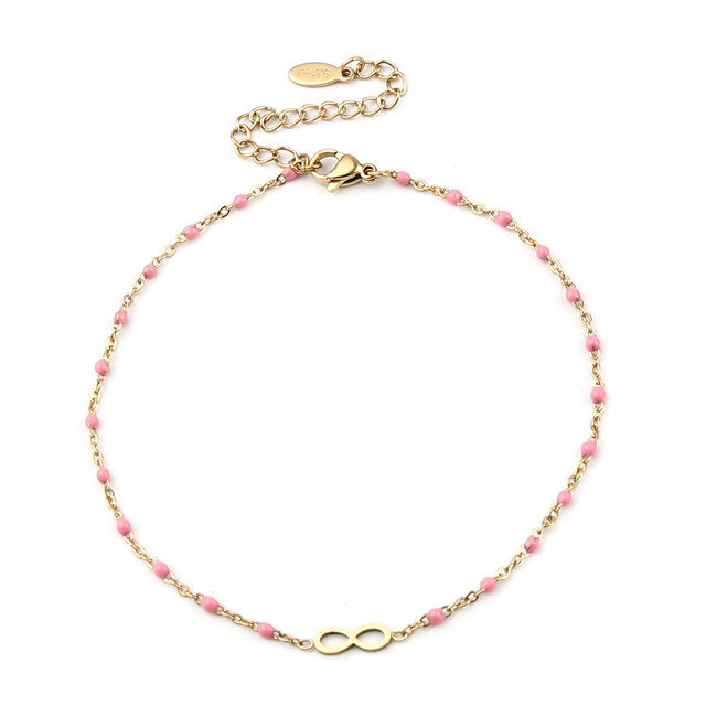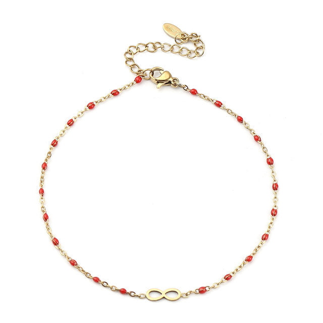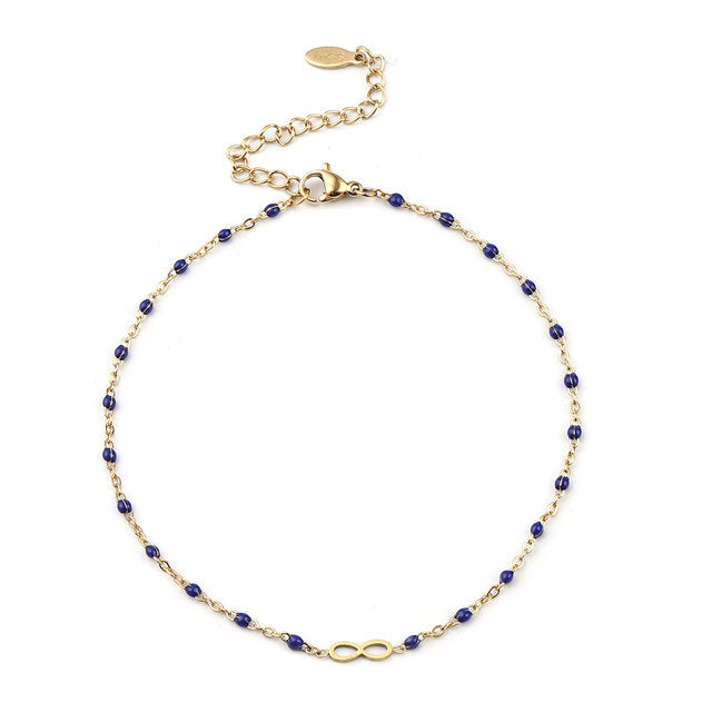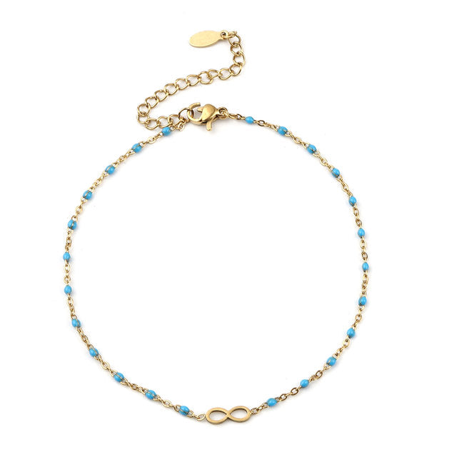 Tobilleras - Nueva tobillera de acero inoxidable con cadena de esmalte de color dorado, regalo para mujer, joyería terminada de 23 cm de largo, 1 pieza