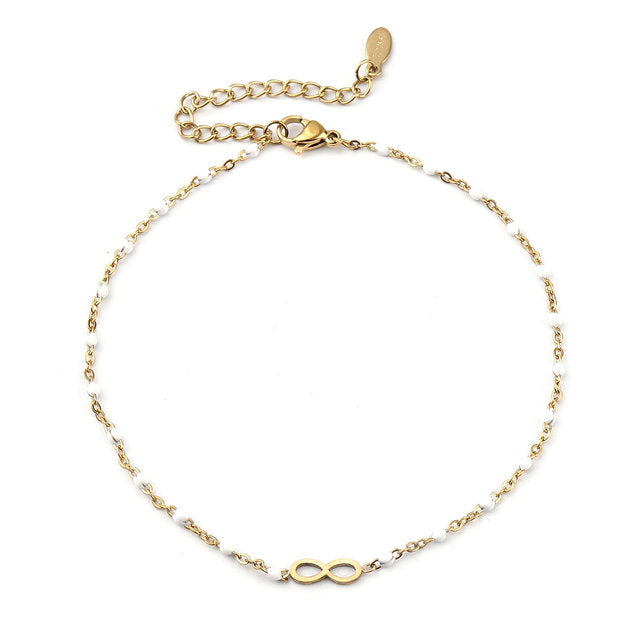 Tobillera de acero inoxidable con cadena de esmalte dorado. Regalos para el tobillo.