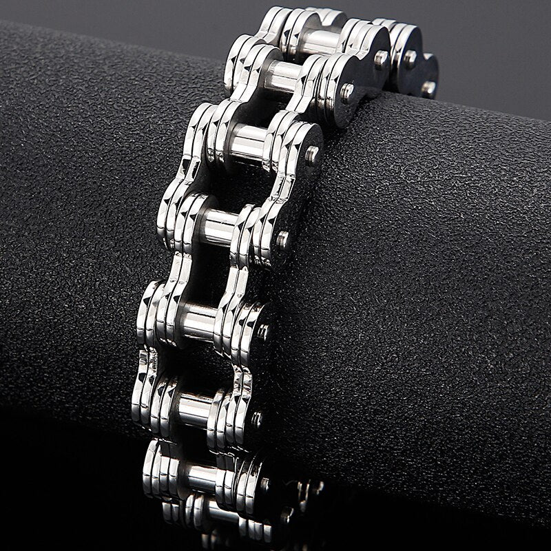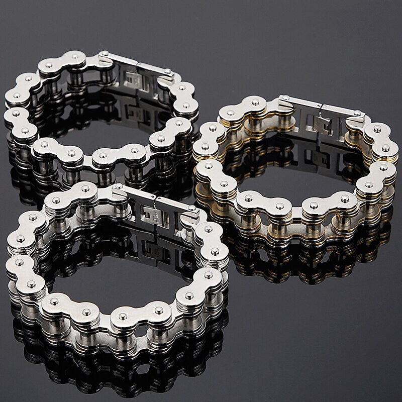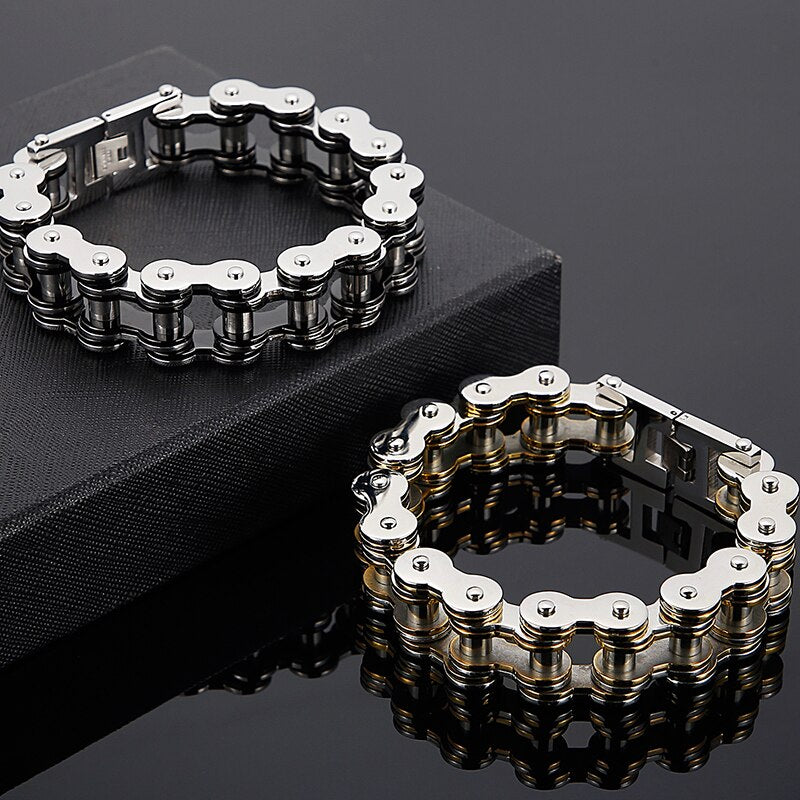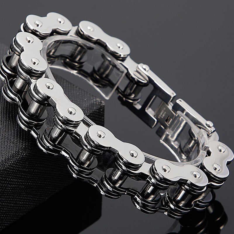 Pulsera de cadena de eslabones de acero inoxidable para hombre, estilo motociclista, estilo hip hop, RTS