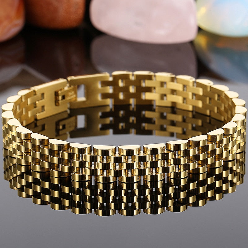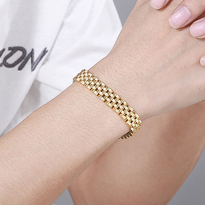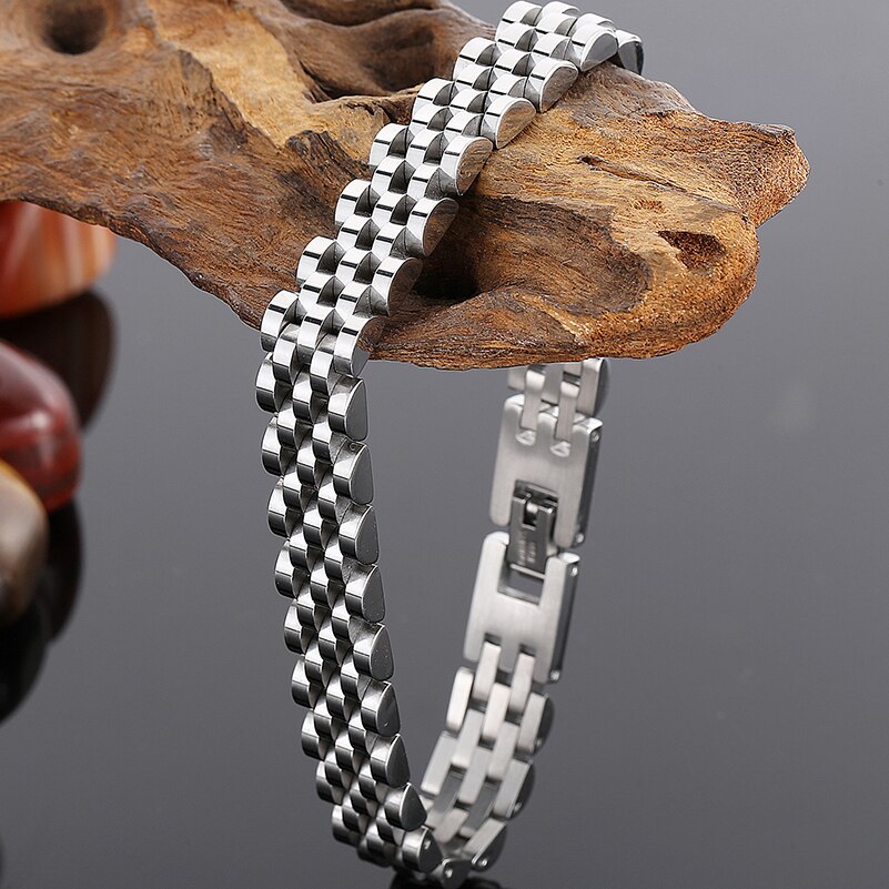 Pulsera de acero inoxidable para hombre y mujer, de 10 mm de ancho y cadena de eslabones ajustable, ideal para llevarla en el día a día.