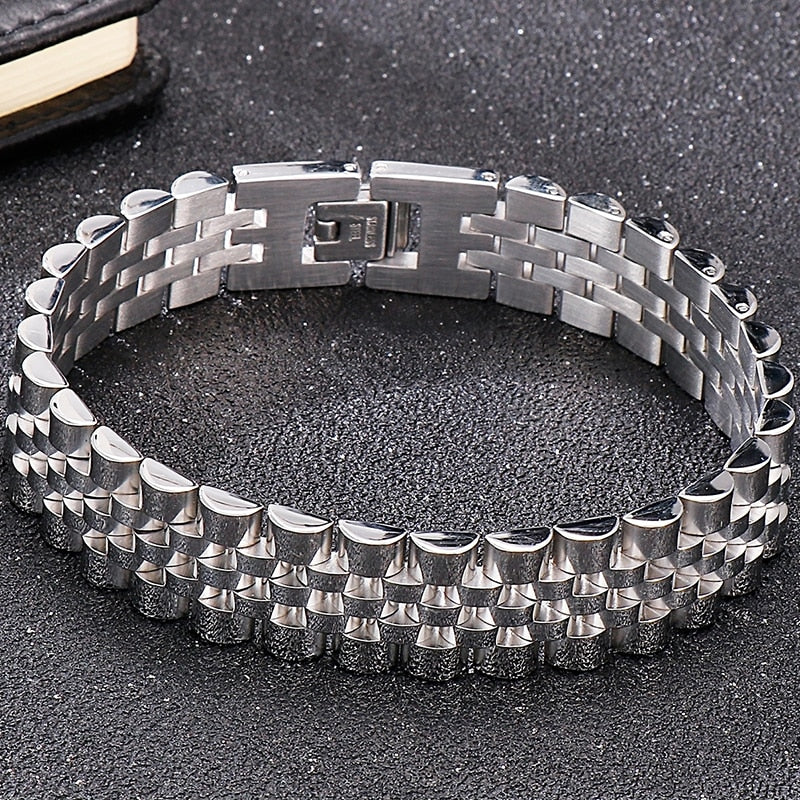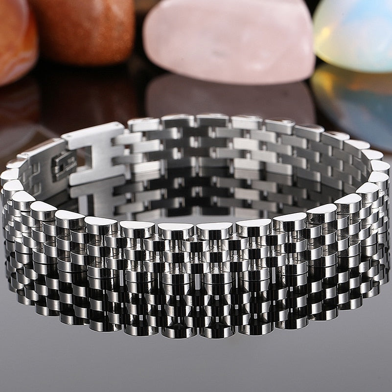 Pulsera de acero inoxidable para hombre y mujer, de 10 mm de ancho y cadena de eslabones ajustable.
