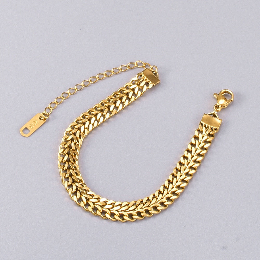 Pulsera de acero inoxidable de alta calidad con textura de metal pesado en color dorado para mujer