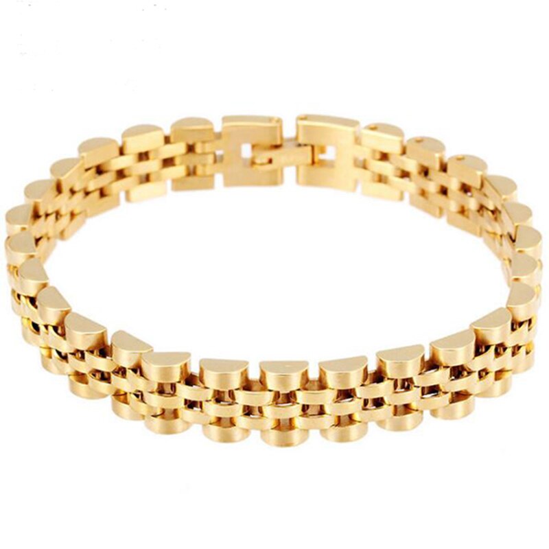Pulsera de acero inoxidable para hombre, cadena de reloj chapada en oro de 10 mm, pulseras para hombre