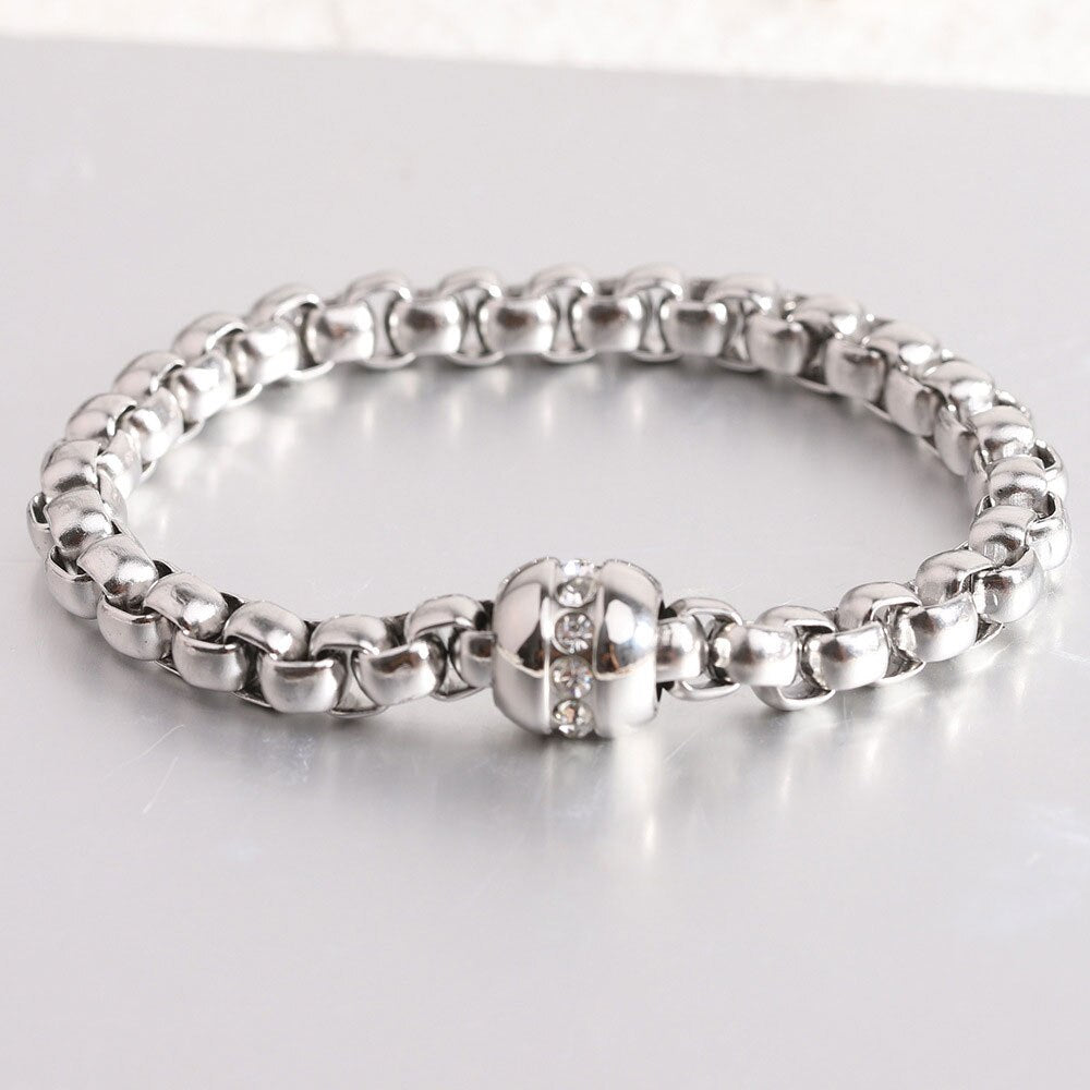 Pulseras de acero inoxidable con diamantes punk, cadenas minimalistas para hombres y mujeres