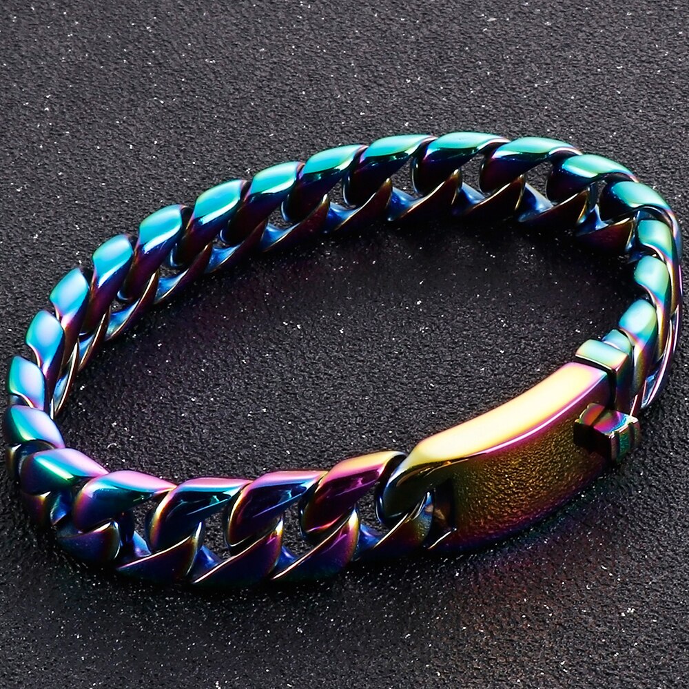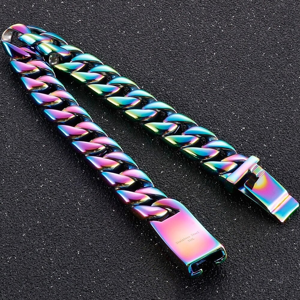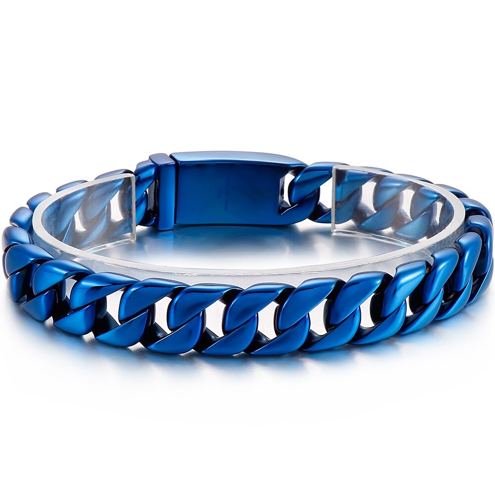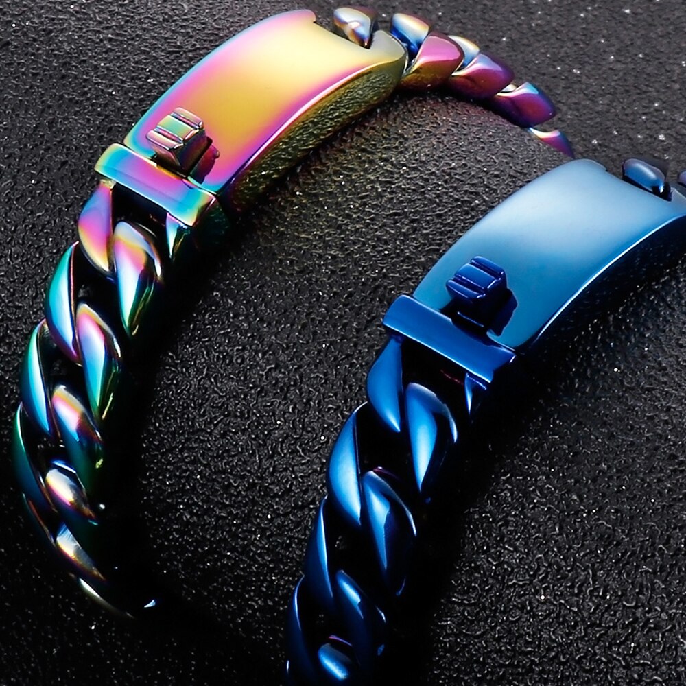 Collar/Pulsera de acero inoxidable con cadena cubana para hombre, chapada en azul, colorida, sin níquel, hipoalergénica, envuelta para regalo.
