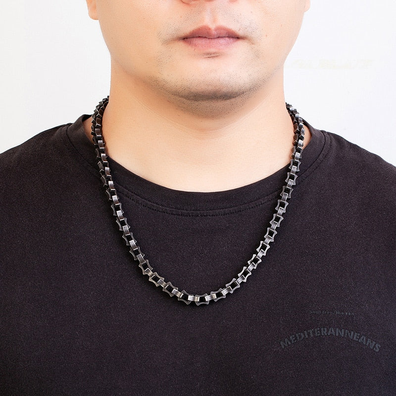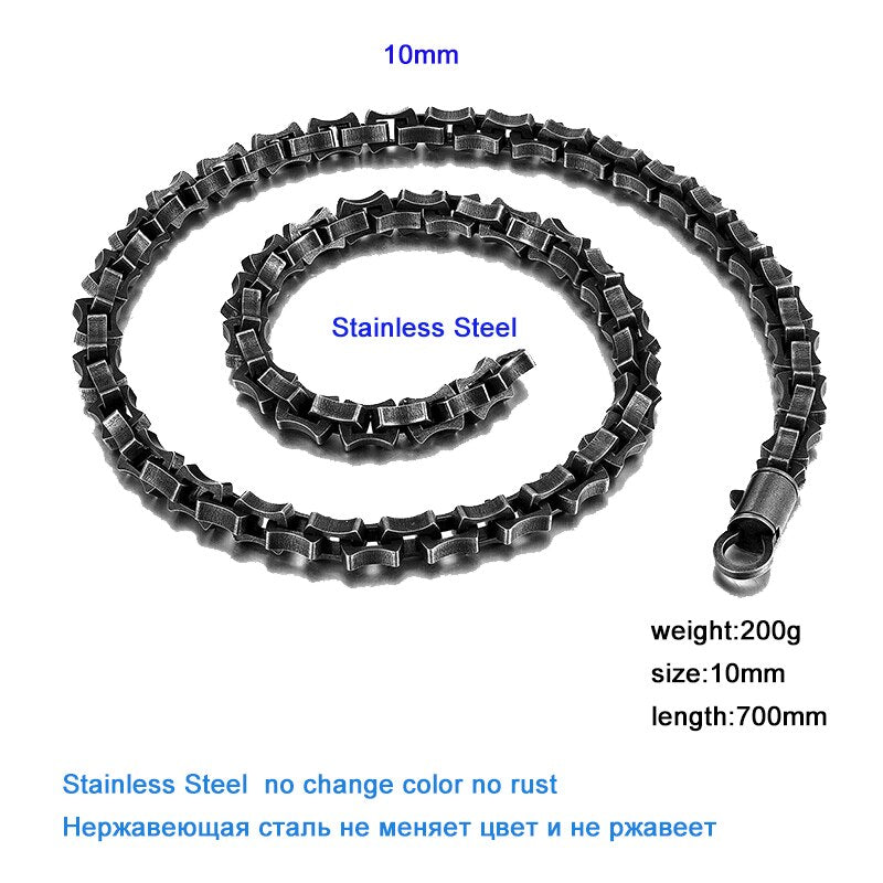 Cadena cubana de acero inoxidable vintage negra de 10 mm de ancho, collar punk largo para hombre, estilo hip hop, plata mate cepillada, accesorios de joyería para hombre.