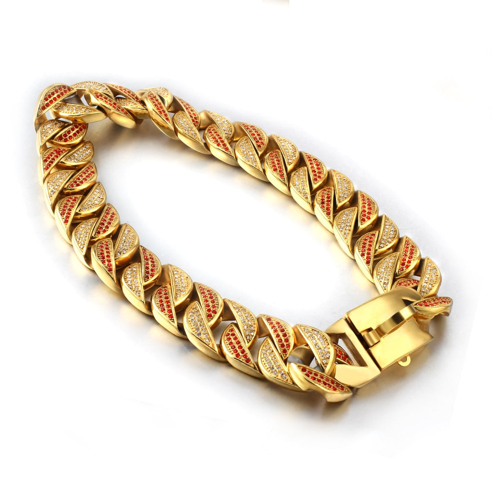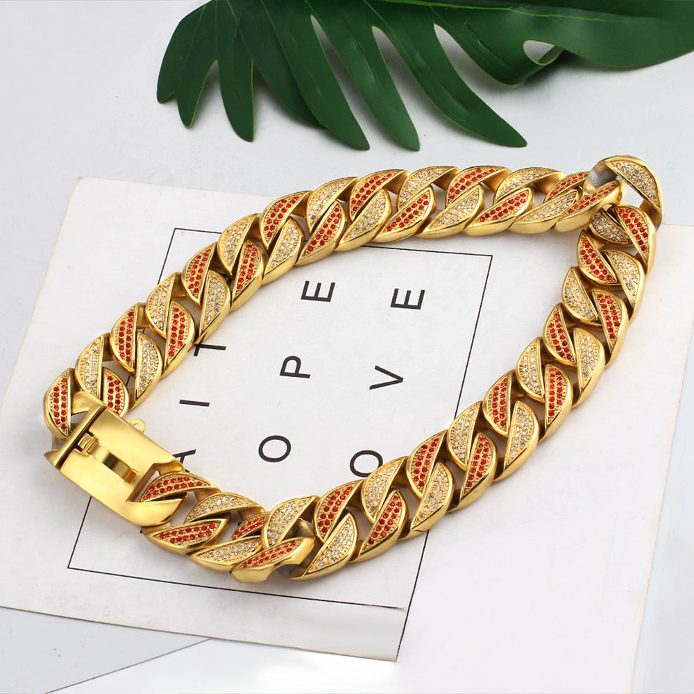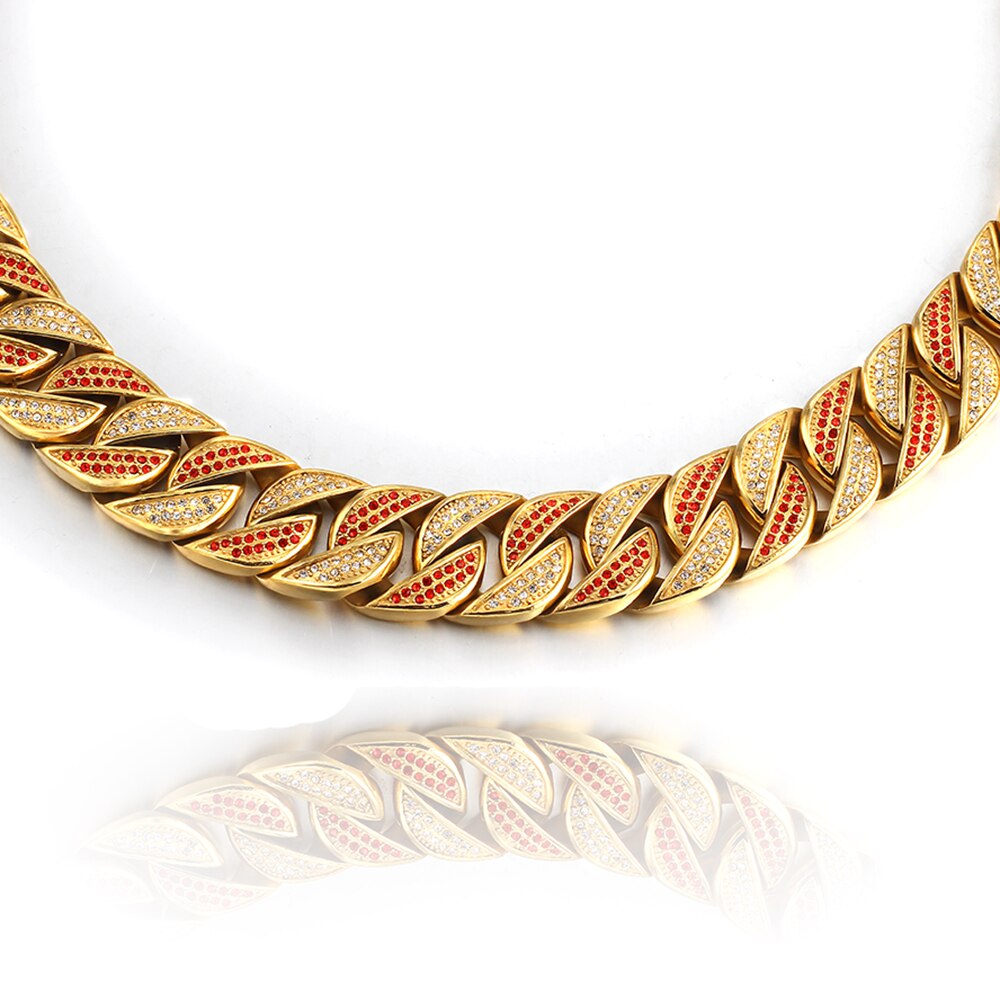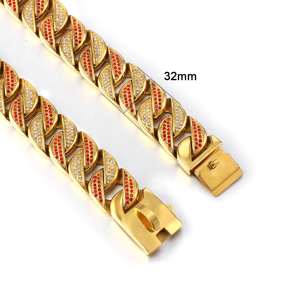 Collar de acero inoxidable para perros grandes, cadena de entrenamiento para mascotas, 32 mm, gargantilla de cristal con incrustaciones de alta calidad, accesorio para collar de mascotas