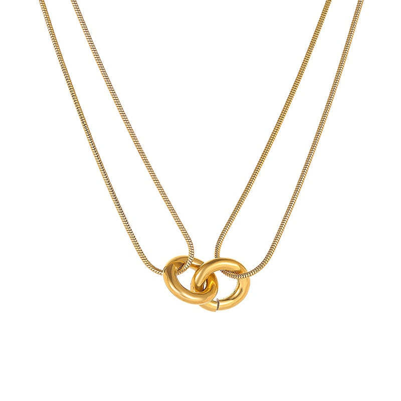 Collar con colgante de anillos de doble círculo de acero inoxidable para mujer